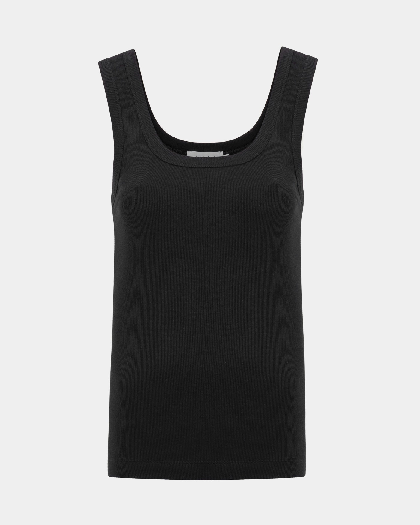 The Evi Top is a true perfect basic. The round neckline sits slightly lower at the front and back for a relaxed look. Made from soft ribbed fabric with cotton and elastane for optimal comfort and a flattering fit.