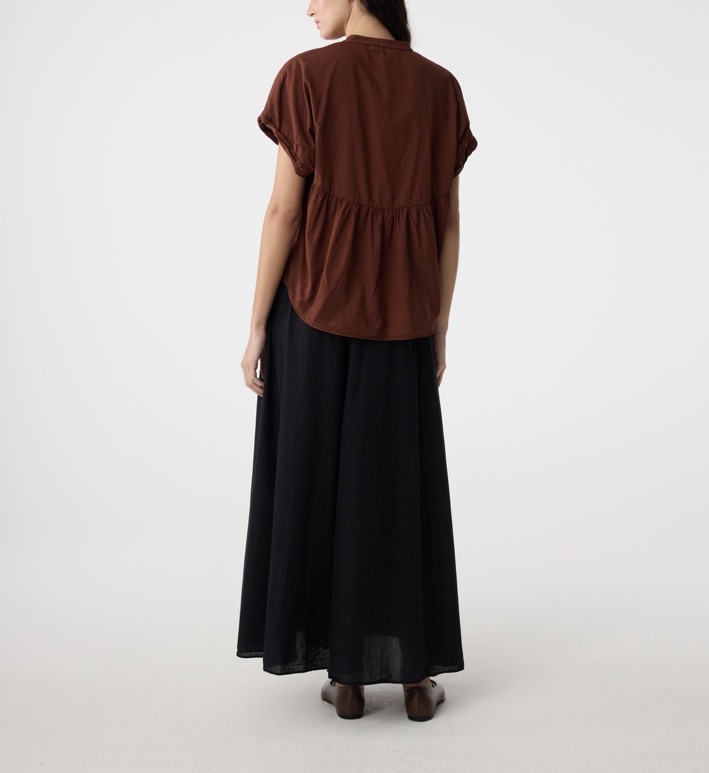 The Lotus blouse is airy and relaxed. Made from 100% cotton with a soft, washed look. Featuring a round neckline, hidden button placket, front pleats and an oversized fit. Easy to style with linen or denim.
