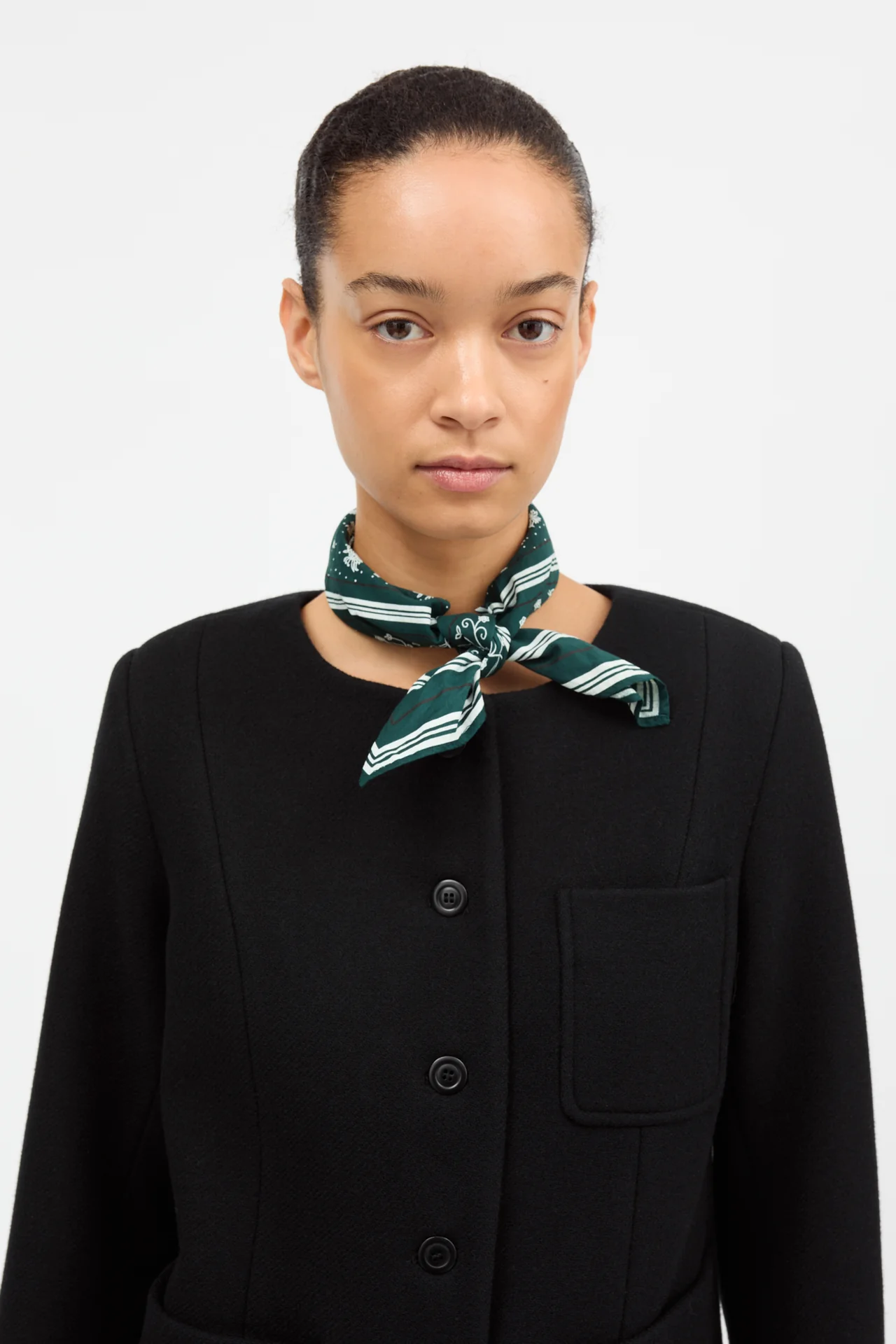 Lightweight scarf in organic cotton voile with a printed pattern. Wear it as a neck scarf, hair wrap, or waist accessory.
