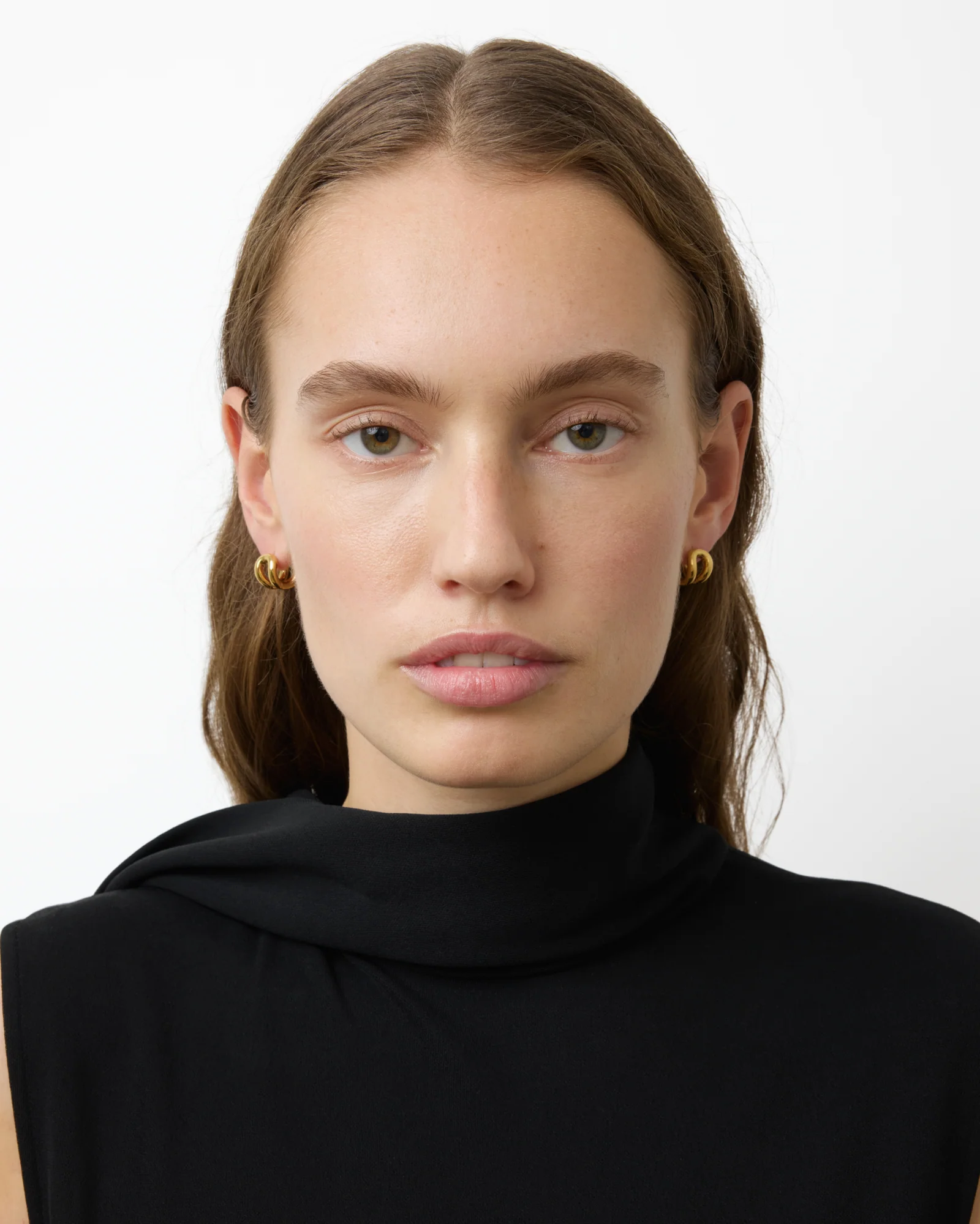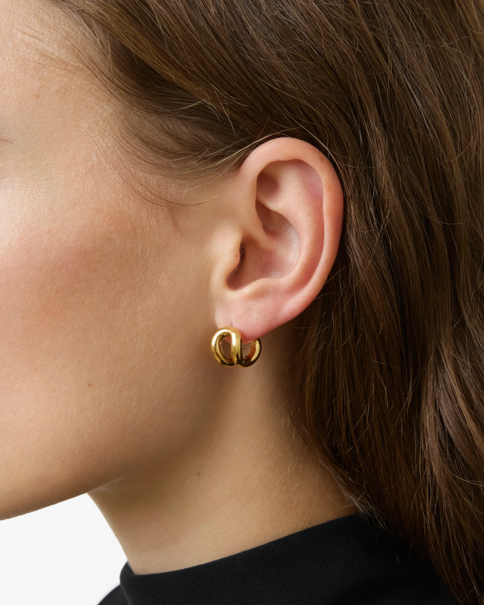 The Asta earrings are subtle and elegant, crafted from 18-carat gold-plated sterling silver with graceful curves in a small, refined silhouette.