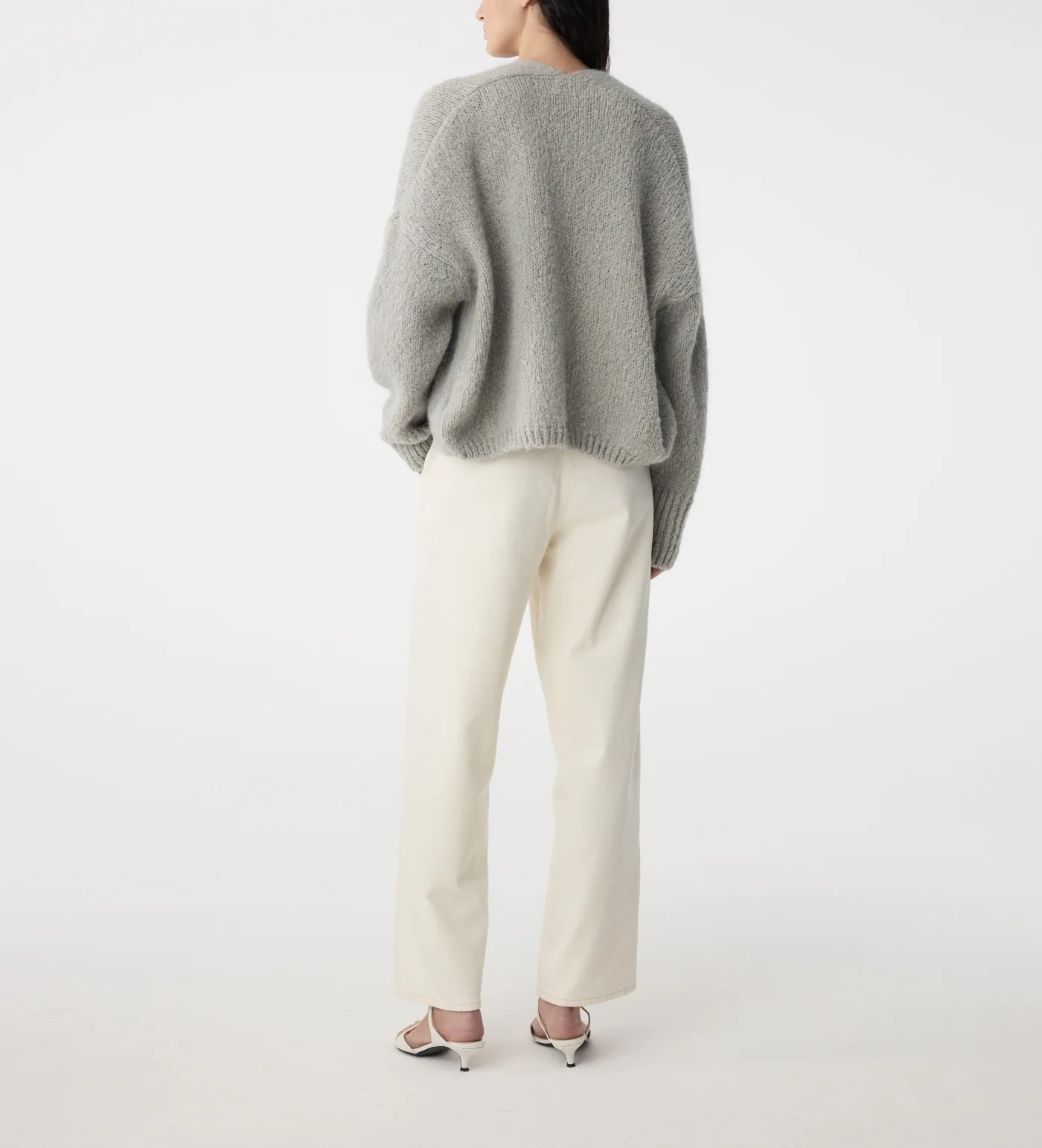 Becky is een korte, boxy cardigan van zachte alpaca wol. Makkelijk te dragen over een T-shirt of jurk. Ribboorden geven een speels detail. Comfortabel en stijlvol voor elke dag..