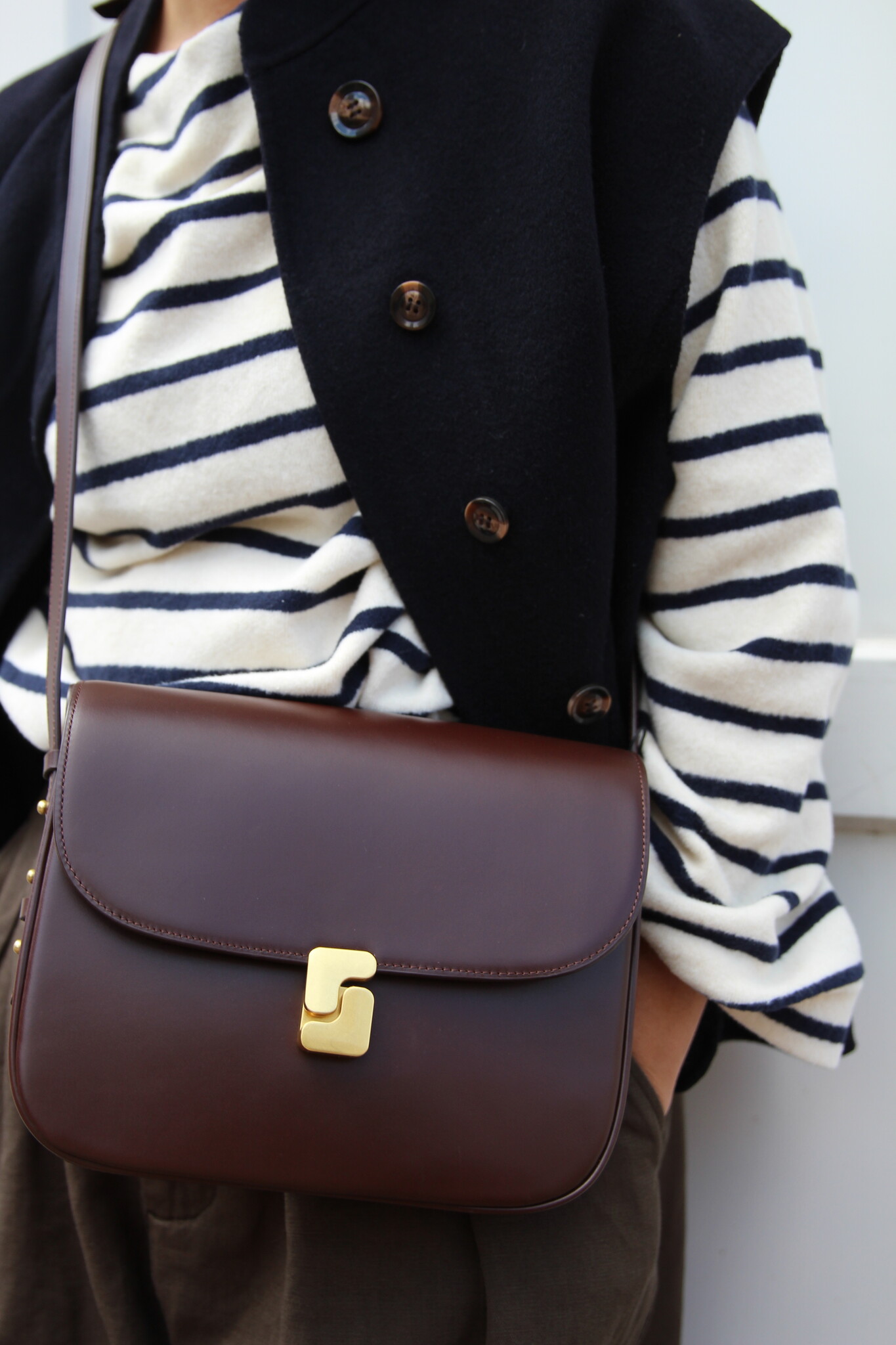 De Bellissima Maxi Bag is de iconische cross body tas van Soeur. De tas heeft een verstelbare schouderriem en een klep met monogram sluiting. Binnenin vind je drie vakken waarvan een met een rits. De tas heeft een katoenen voering.