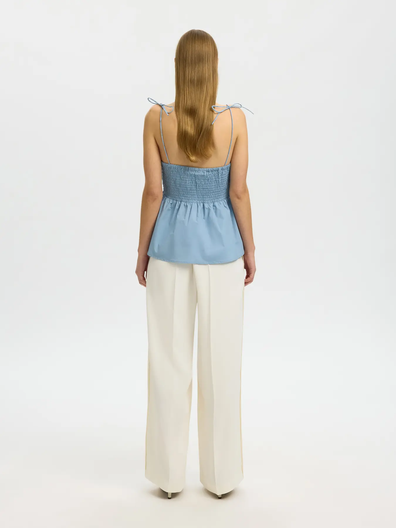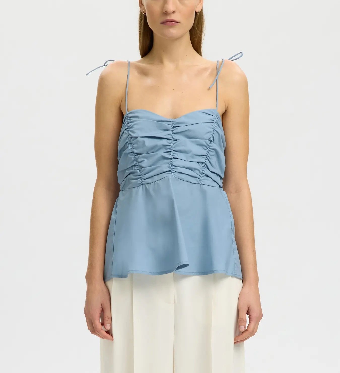 Luchtige top met dunne bandjes en geplooid detail aan de voorkant. De Delia top heeft een elastische achterkant en een losvallende fit voor een comfortabele, vrouwelijke look.