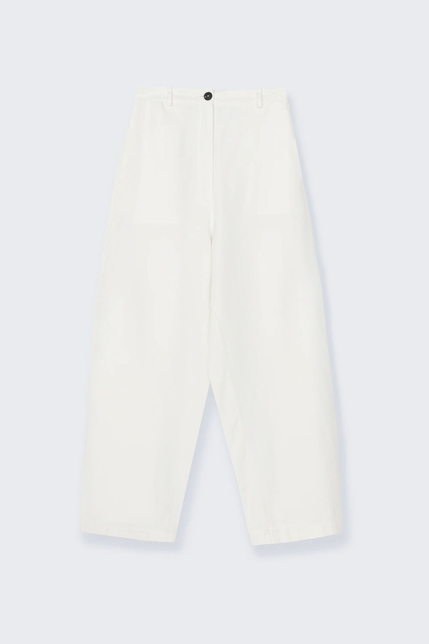 Deze broek heeft een oversized silhouet met een relaxte pasvorm. De broek heeft zijzakken en een strakke achterkant zonder zakken voor een minimalistische look. De taille is afgewerkt met riem lussen. Perfect voor warme dagen.