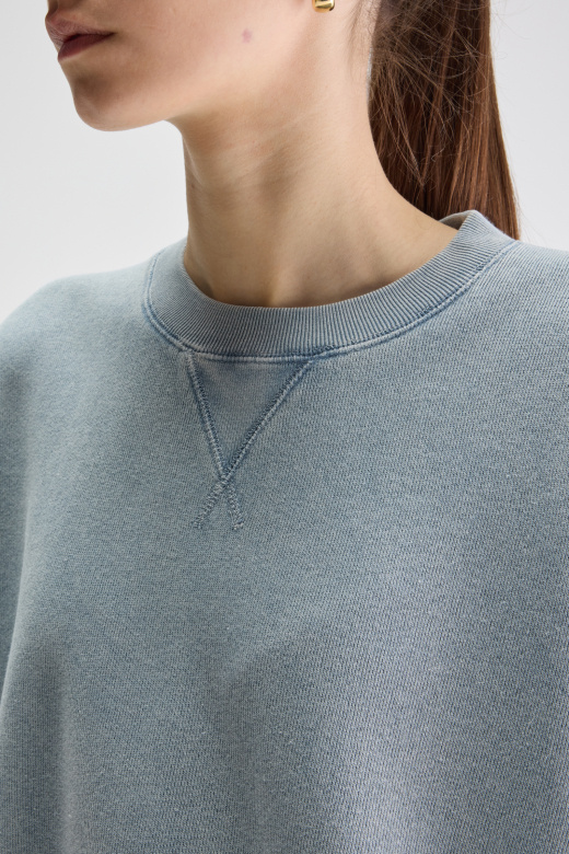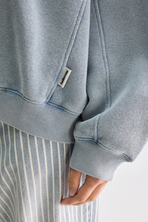 Deze jersey sweater met oversized fit is een fijne alledaagse trui die comfort en stijl moeiteloos combineert. De zachte stof draagt prettig en de mooie lichtblauwe kleur geeft elke outfit een frisse, moderne uitstraling.