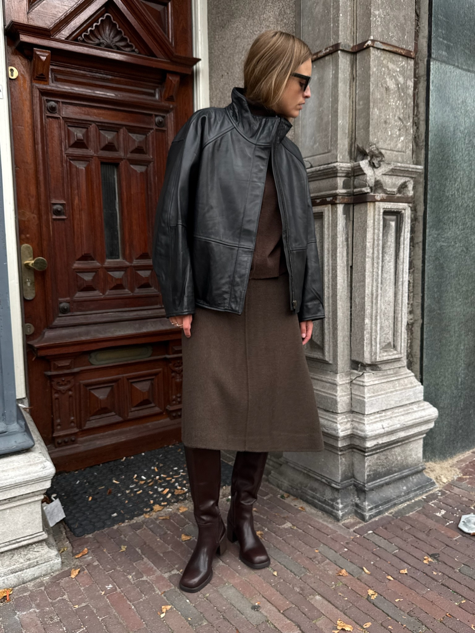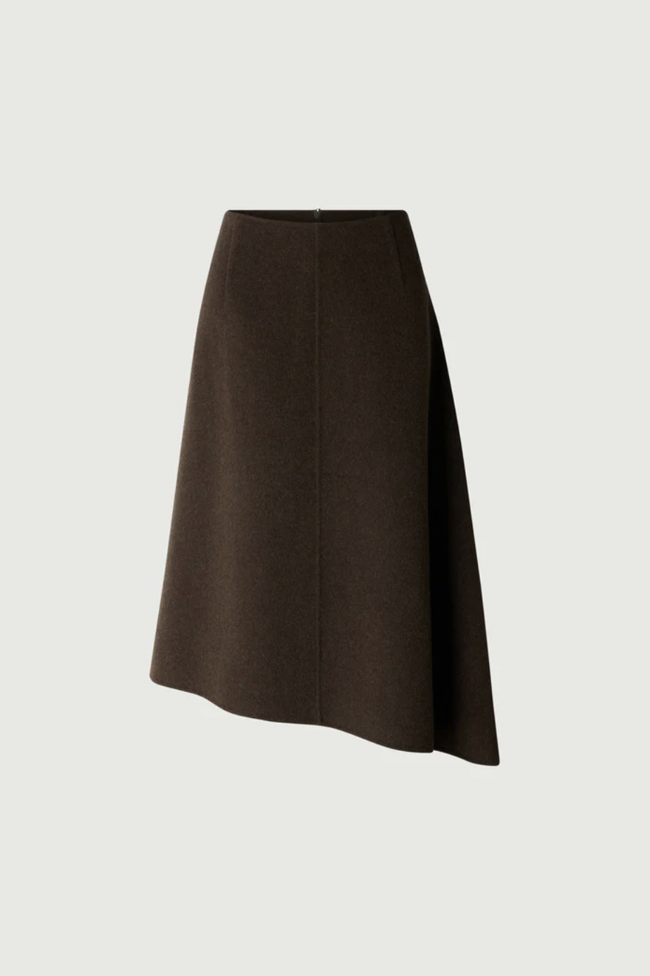 Deze elegante rok is gemaakt van een hoogwaardige wolmix en heeft een asymmetrische zoomlijn voor een moderne twist. De rok valt tot onder de knie, sluit mooi aan in de taille en is voorzien van een onzichtbare zij rits voor een strakke afwerking.