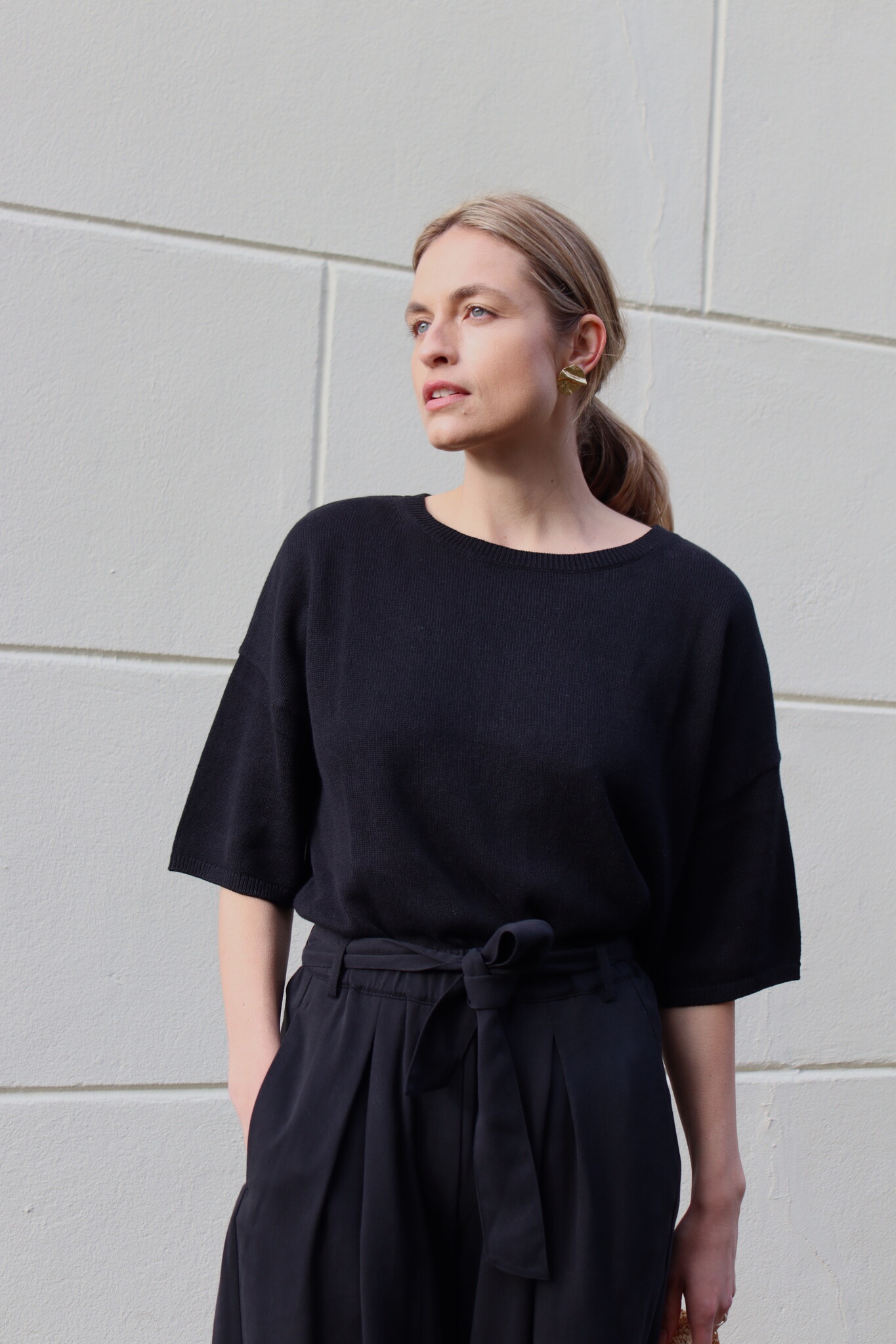 De Ilona Pullover is een zachte, losvallende knit met korte mouwen en een ronde hals. De fijne structuur en lichte stof maken deze trui perfect voor een comfortabele en stijlvolle everyday look.