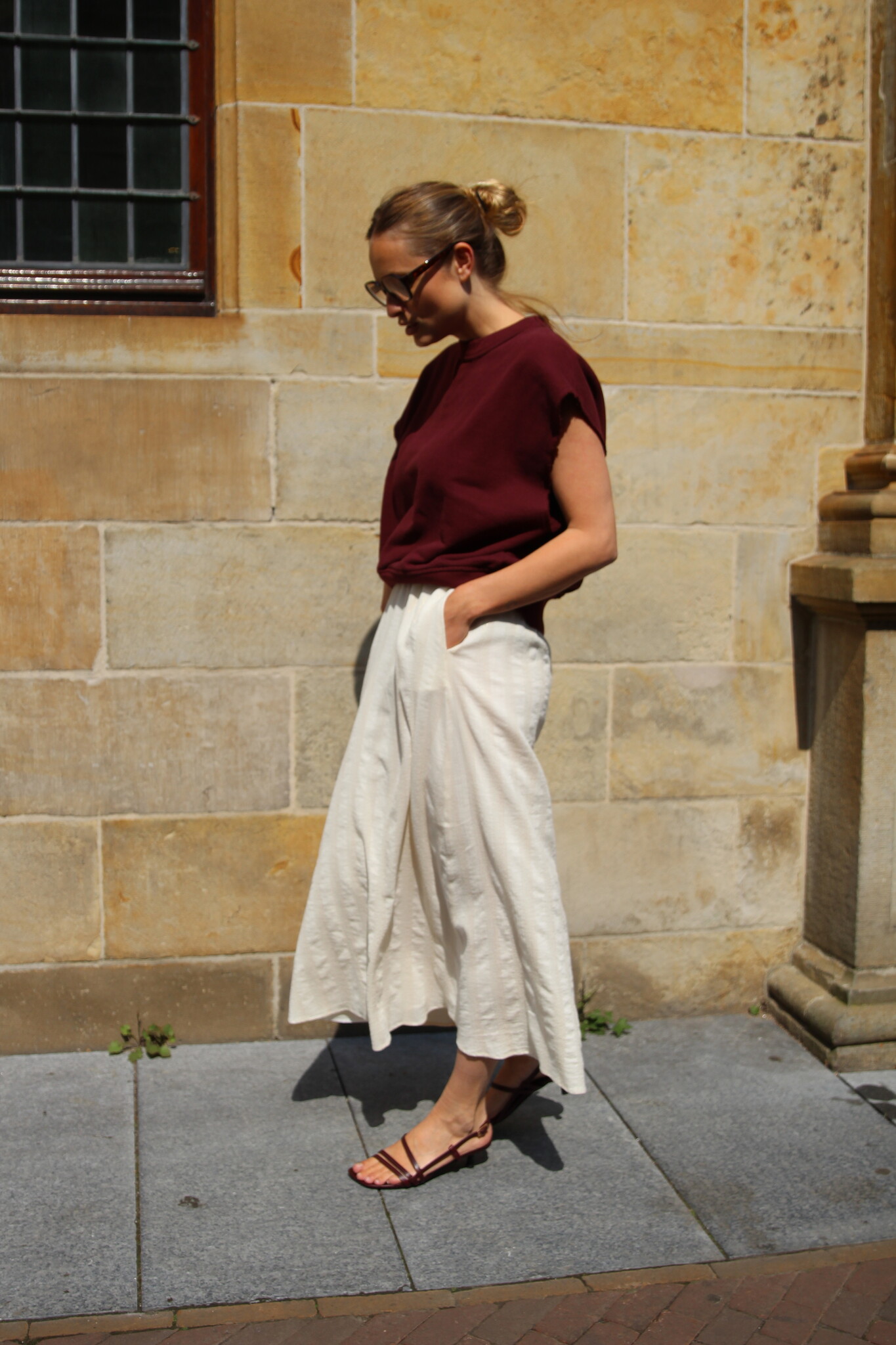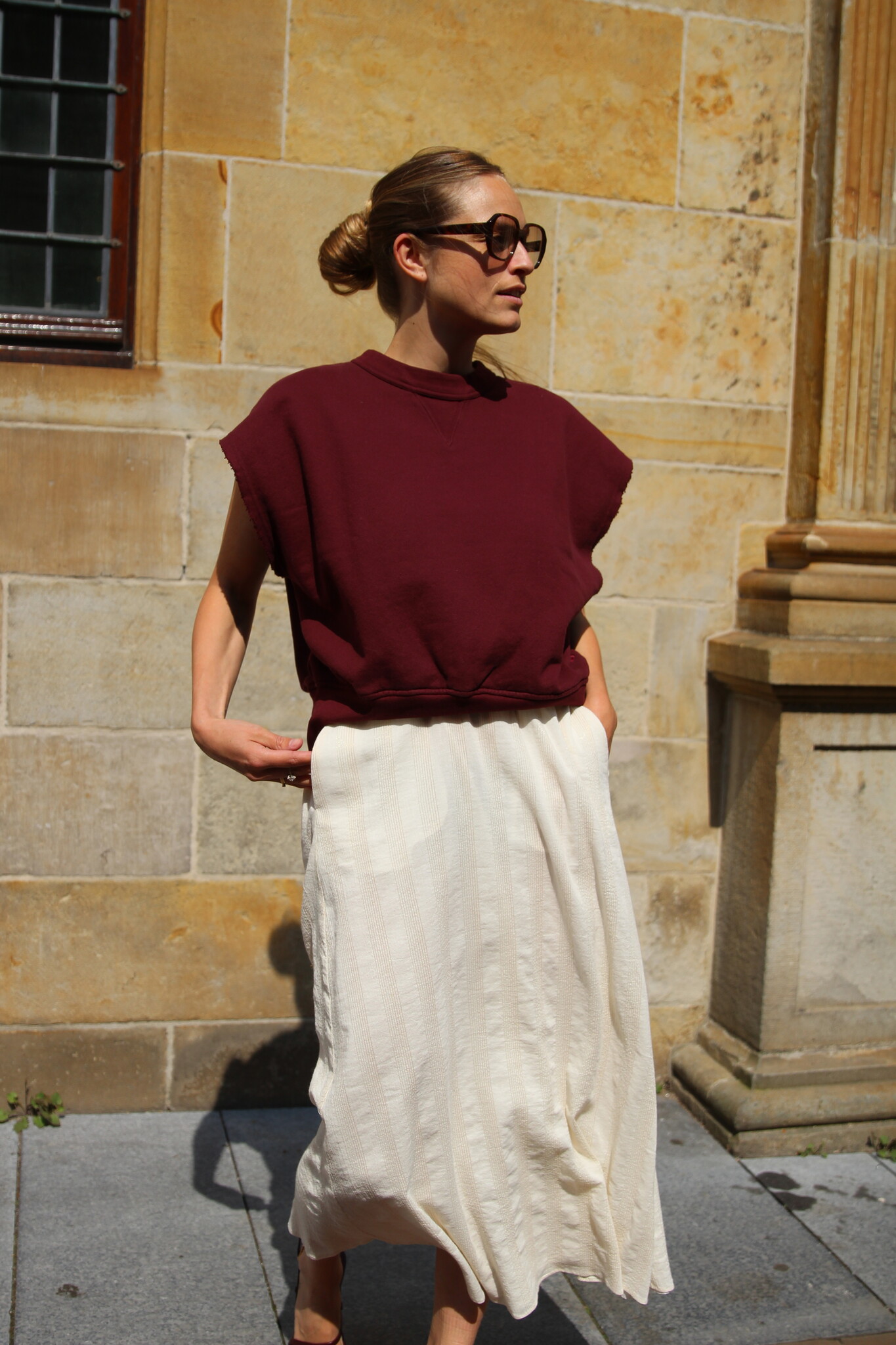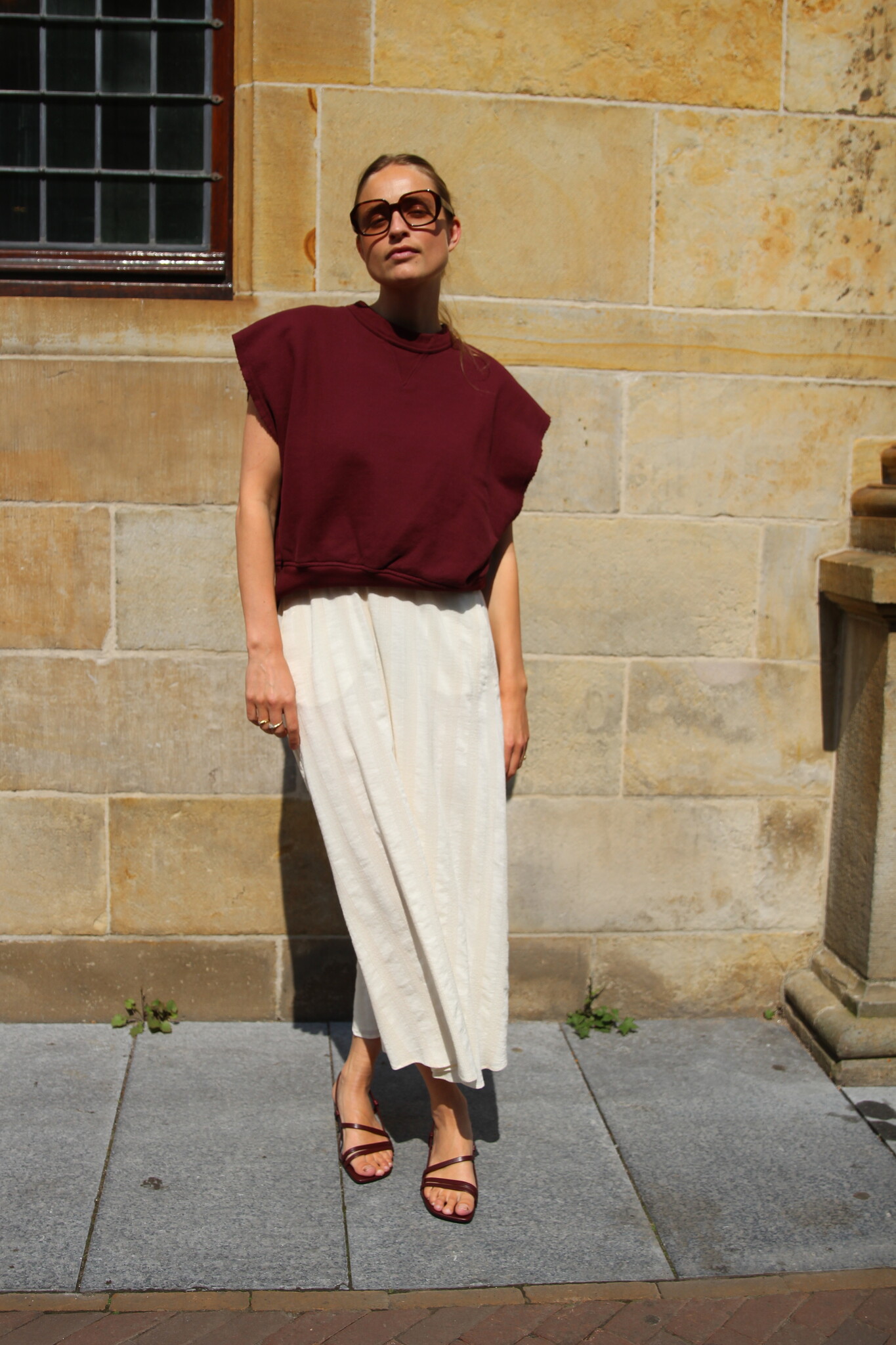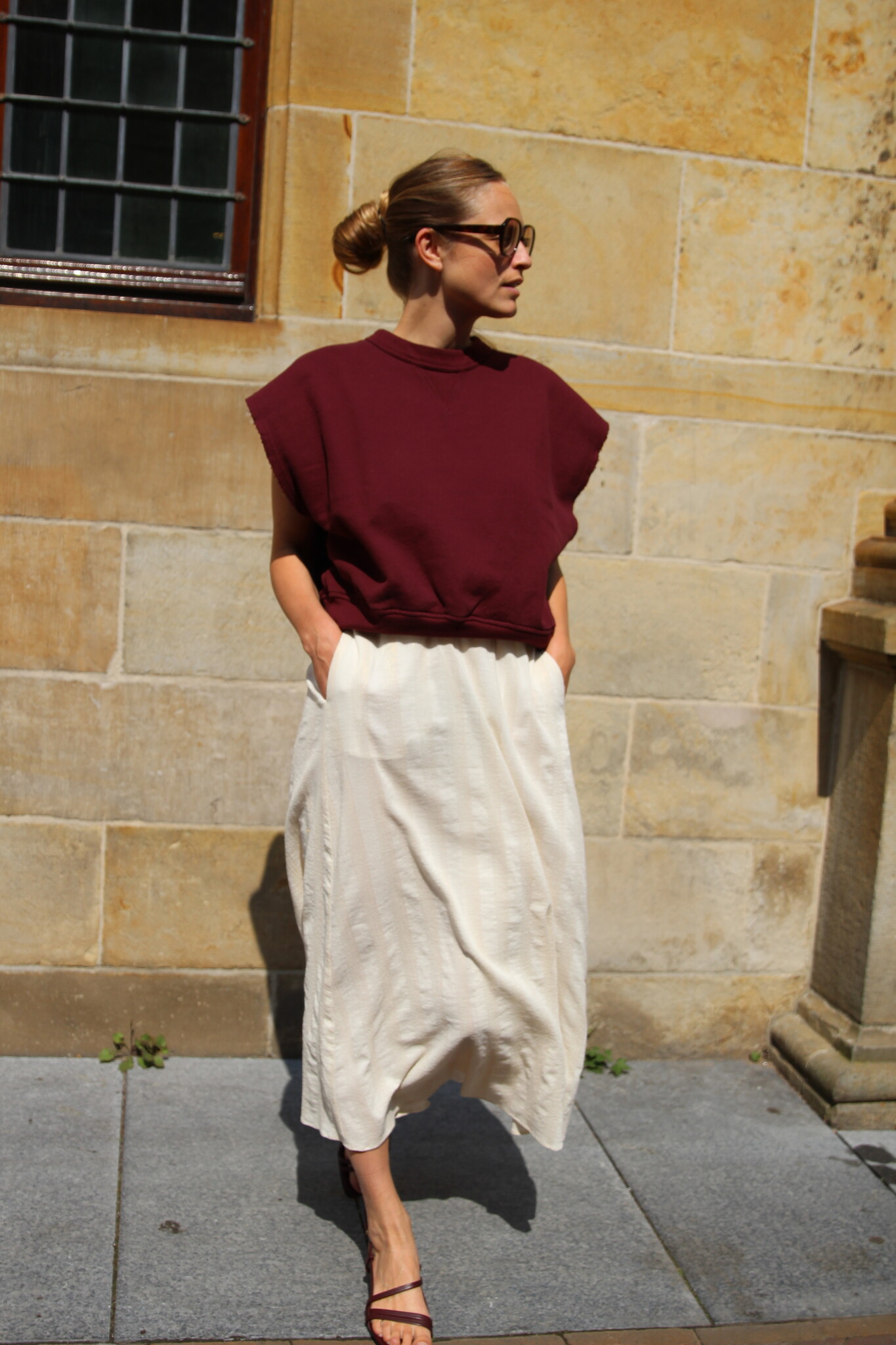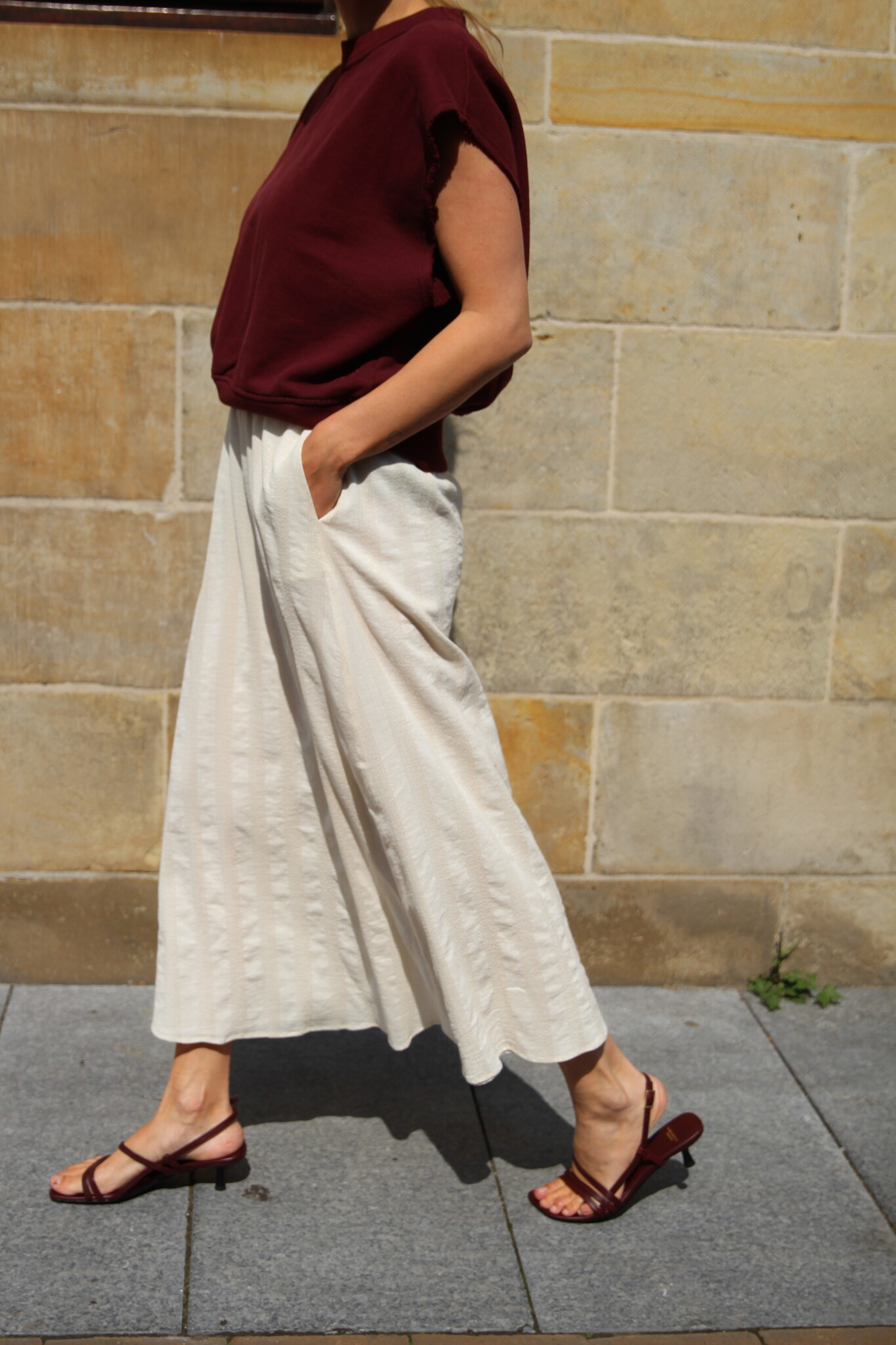 De Jabo is een klassieke rok voelt fijn aan. De rok heeft een elastische band, steekzakken, en heeft een A-lijn en valt tot net boven de enkels.