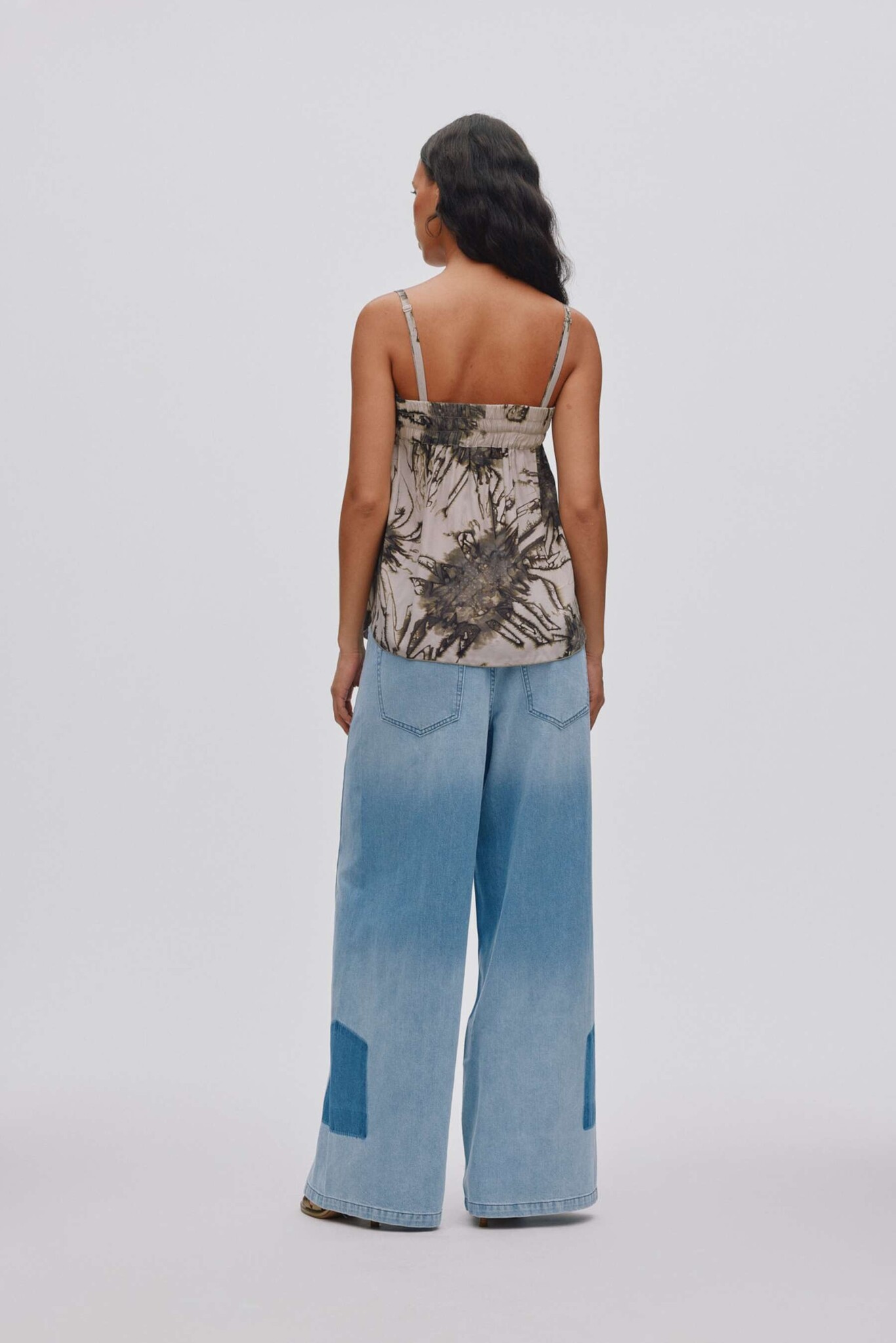 De Light Denim Wide Jeans heeft een middelhoge taille met riemlussen, rits, voor- en achterzakken. De lange, wijde pijpen met ballon-effect en lichtgewassen denim geven een stoere look.