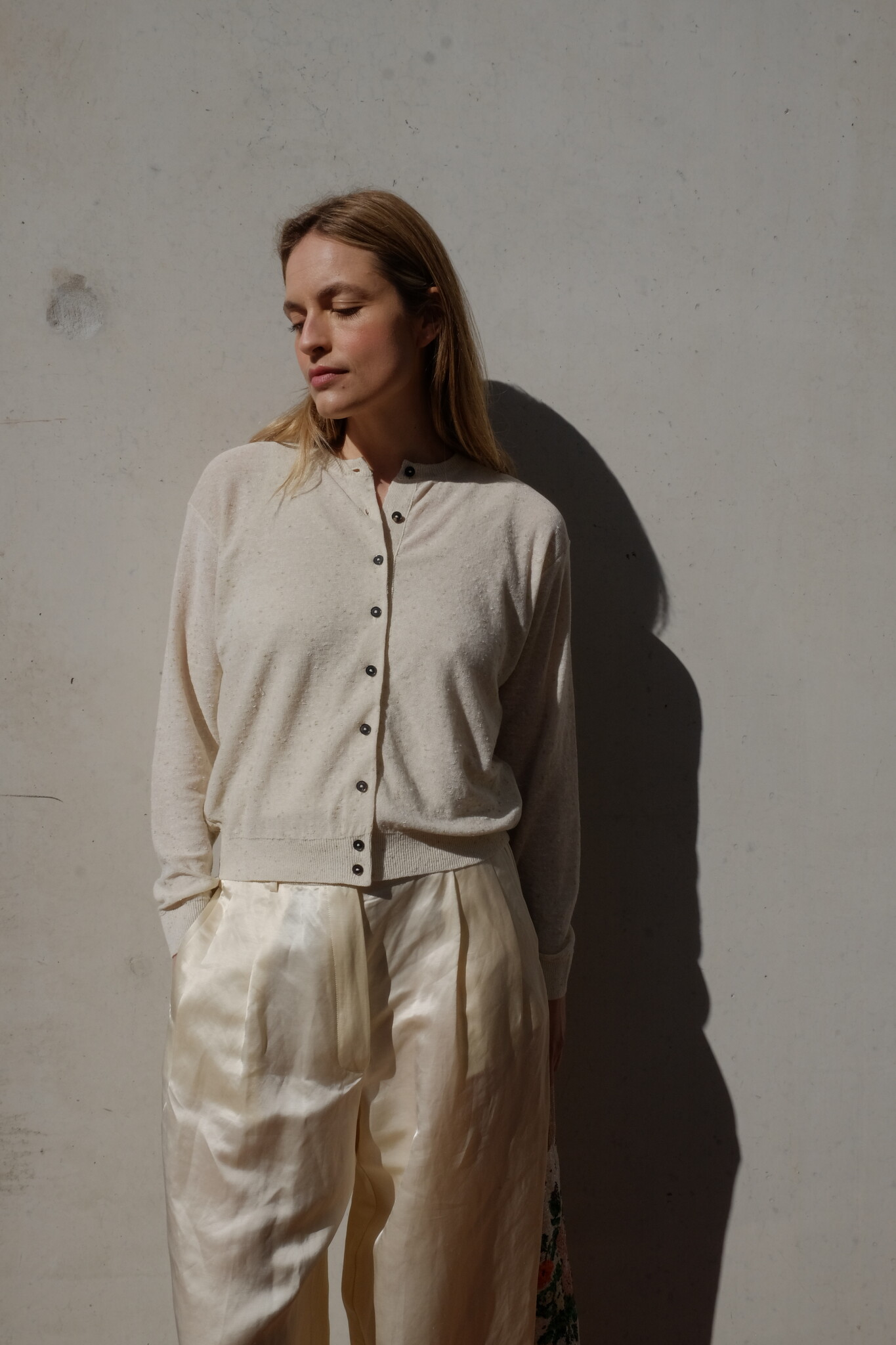Oversized vest van een katoen linnen mix met een comfortabele pasvorm. Voorzien van een aangesloten ronde hals, ribboorden en contrasterende knoopjes. De rijke textuur geeft dit item een verfijnde, moeiteloze uitstraling voor elke dag.