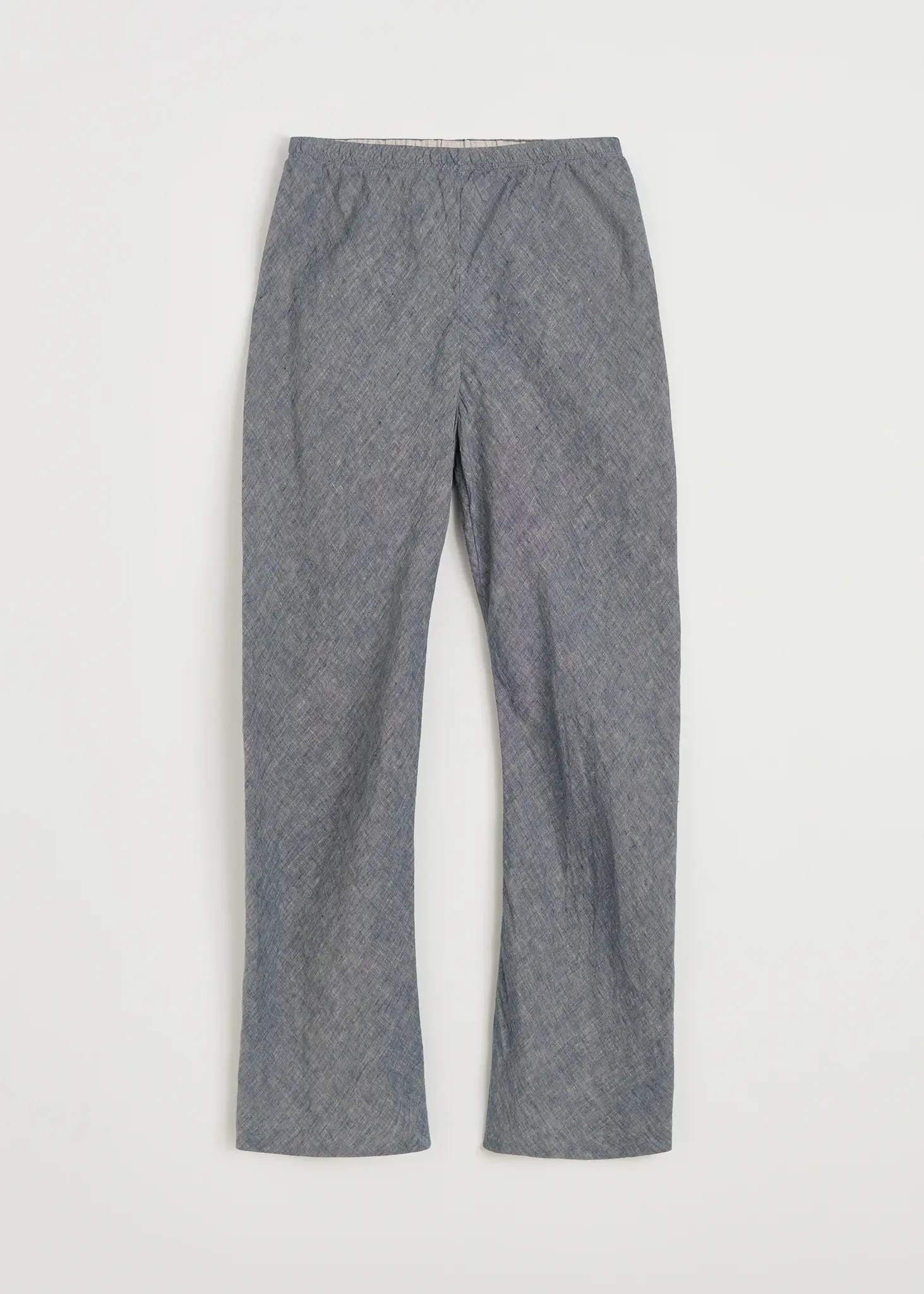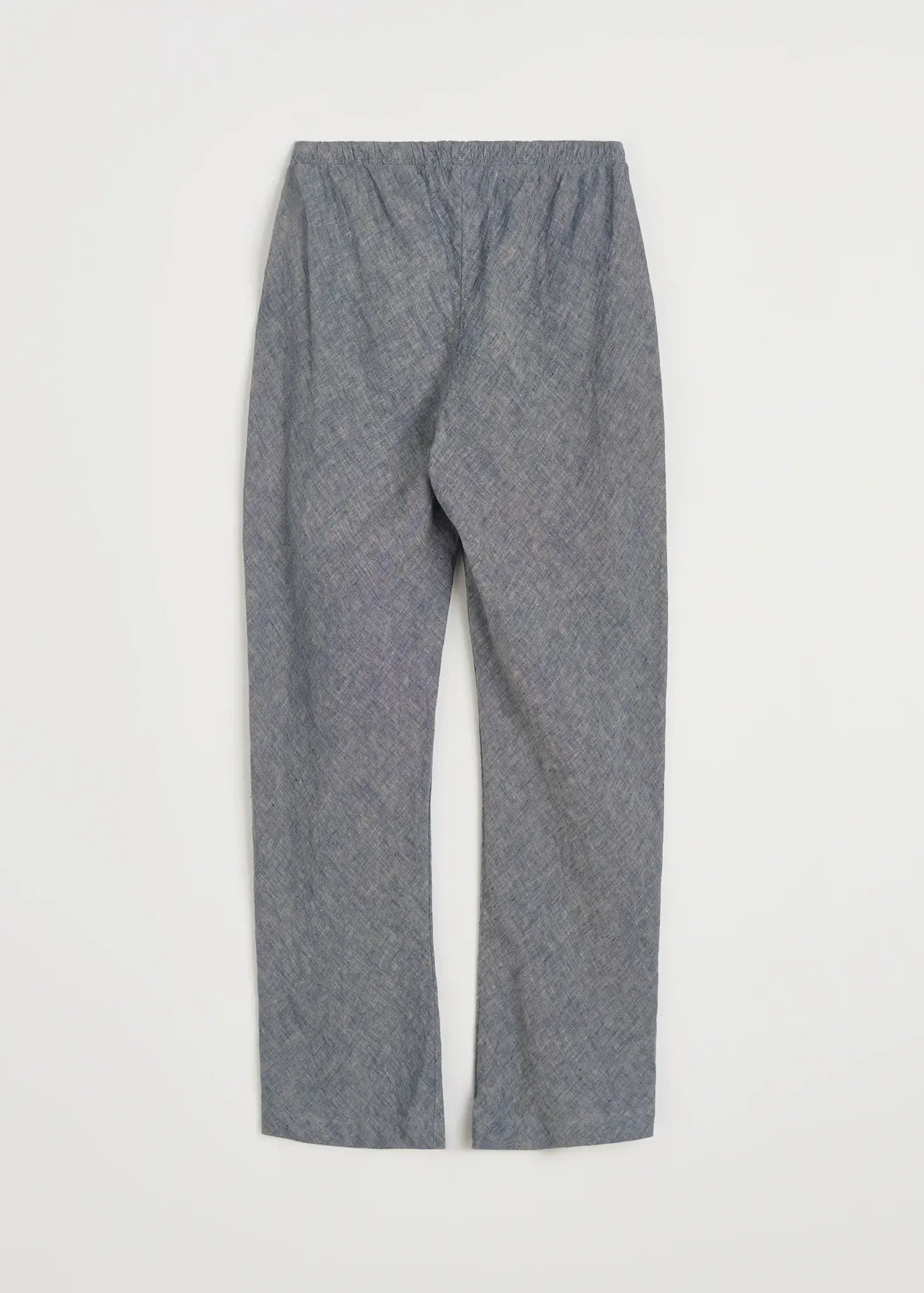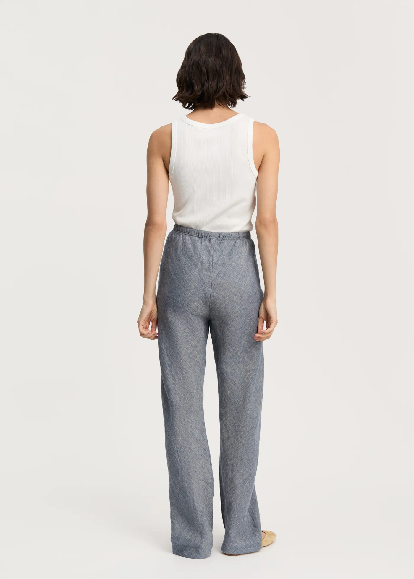 De Mara Pants is een casual broek van gemêleerd linnen met een rechte pijp en middelhoge taille. De elastische band en schuine naden zorgen voor een comfortabele, elegante valling.