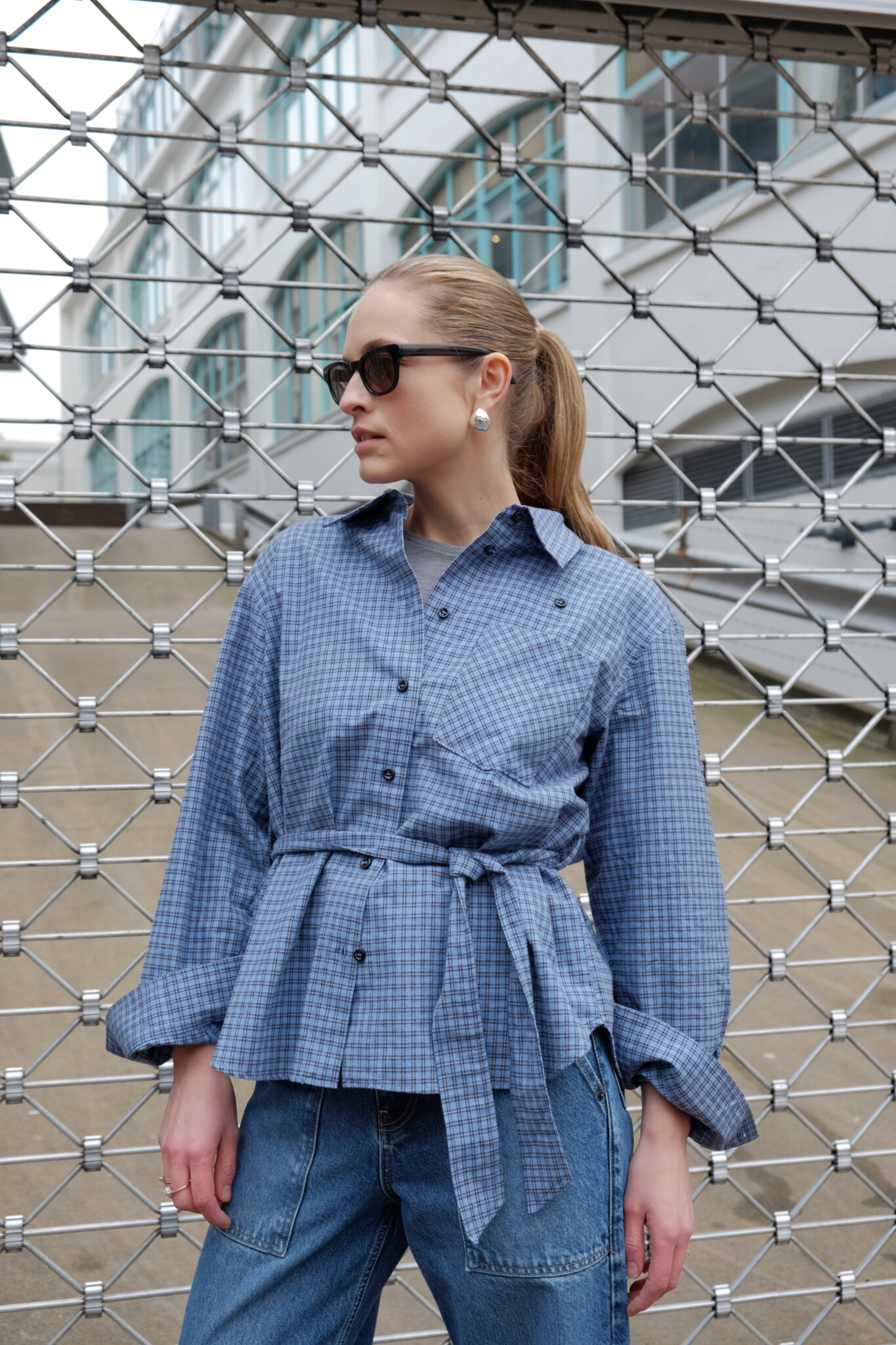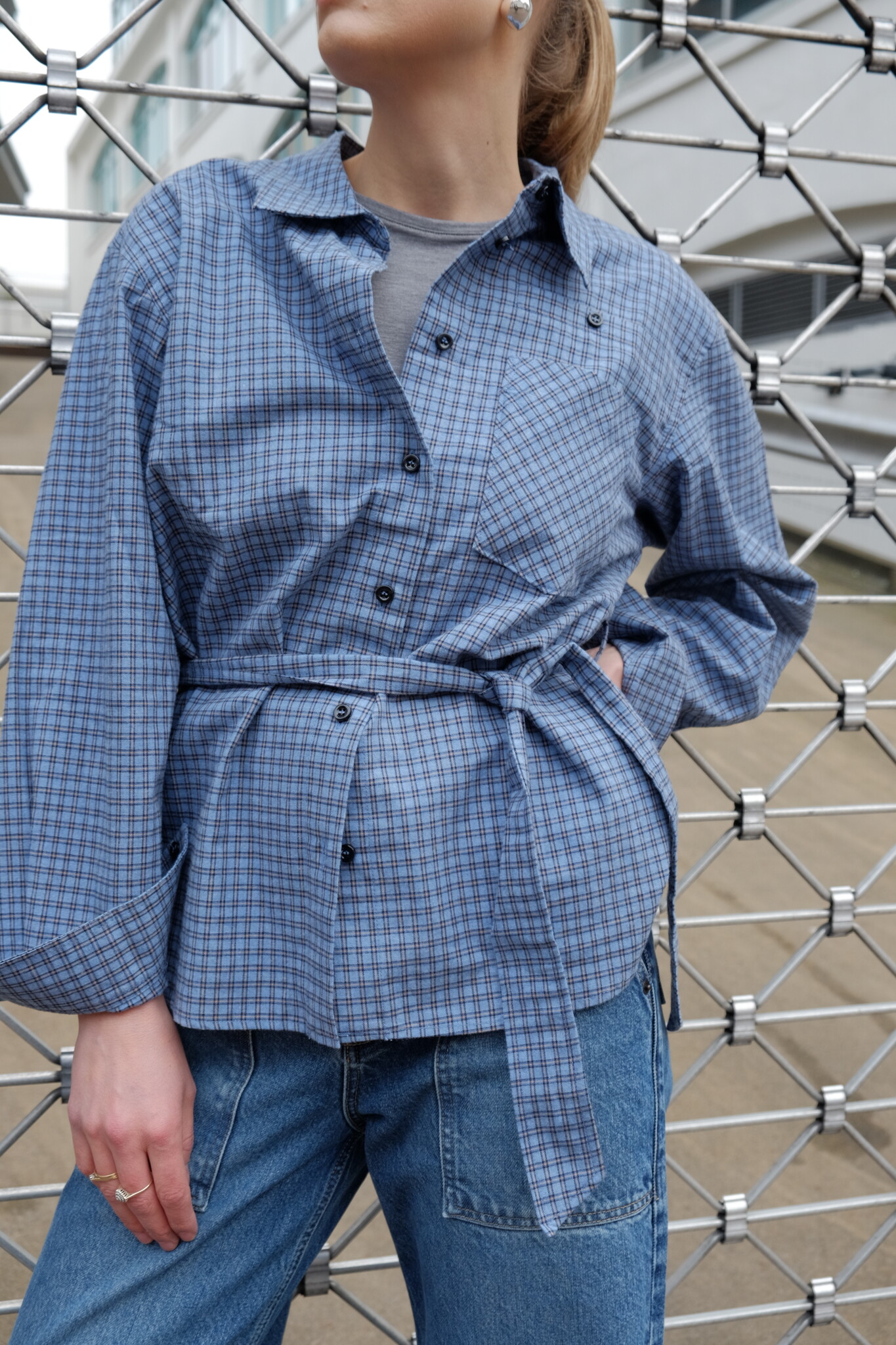 Het Matina Shirt is een klassiek flanellen overhemd van zachte, dikke biologische katoen. Het heeft een boxy fit, verlaagde schouders, een afneembare tailleceintuur, borstzak, knoopsluiting, manchetknoopjes en een iets langere achterkant.