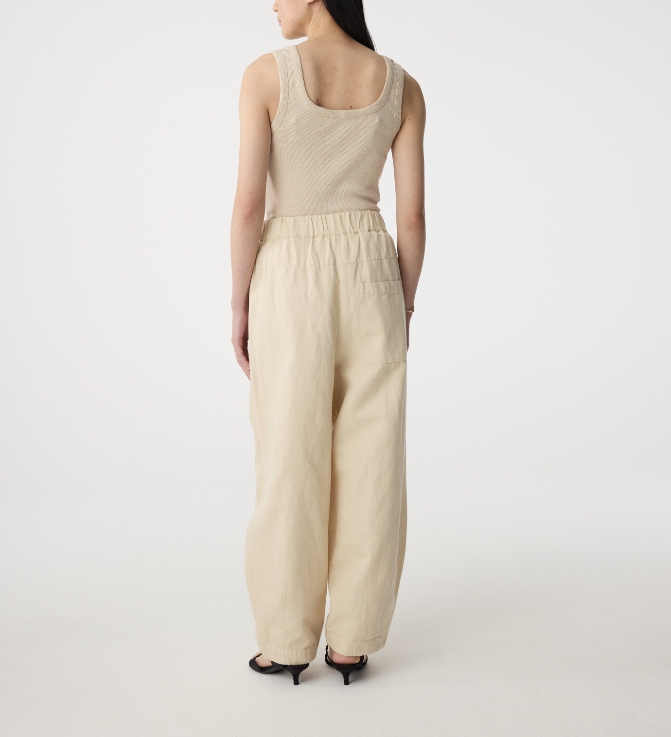 Mona heeft een ballonfit: ruim bij het been en smaller bij de enkel. De elastische tailleband zorgt voor comfort. Met schuine zijzakken en een opvallende achterzak. Gemaakt van luchtige katoen-linnenmix.