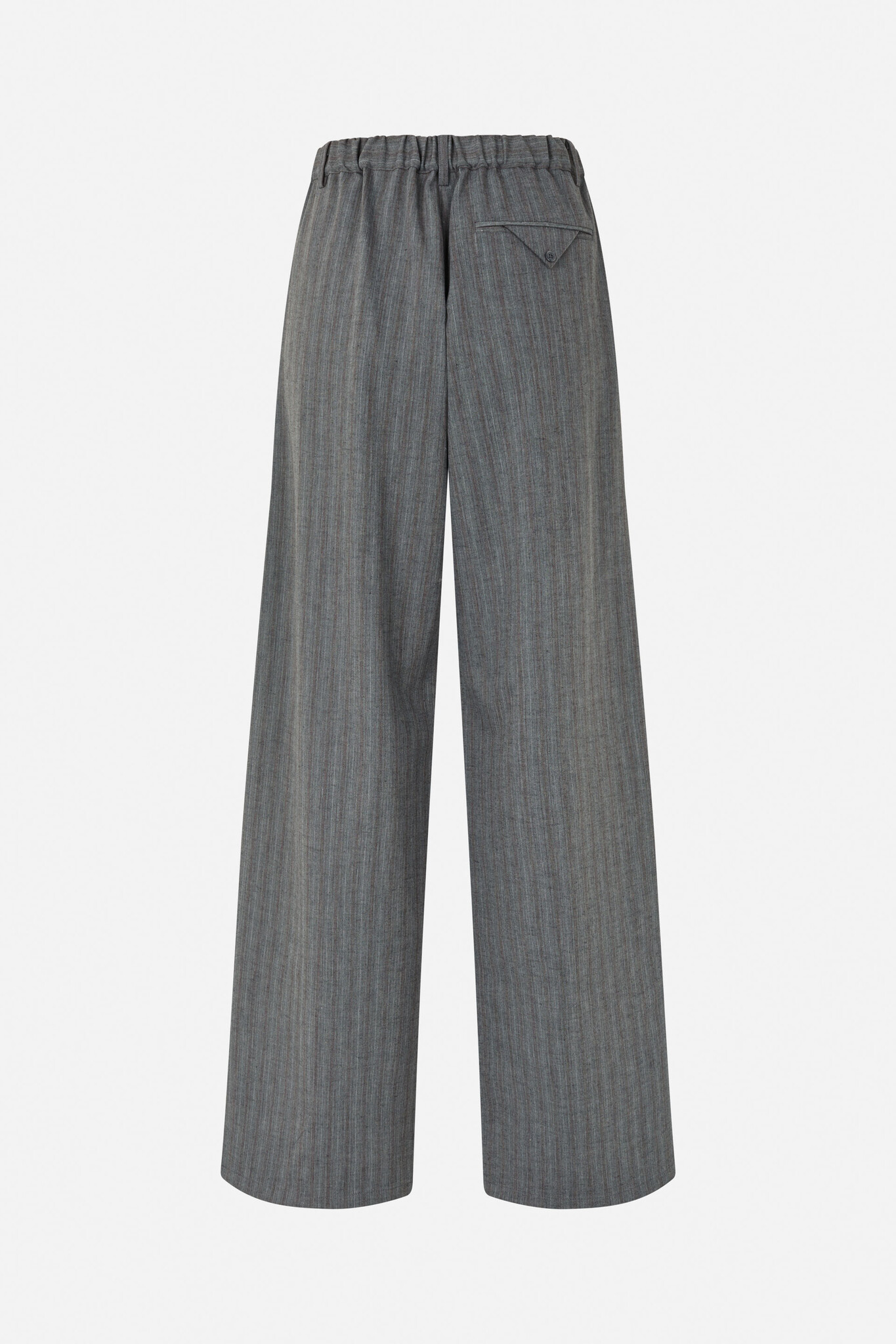 De Noor Trousers hebben een hoge taille, rechte pijpen en een losse pasvorm. De broek heeft een elastische tailleband met riemlussen, steekzakken, een sierachterzak en sluit met een rits en knoop.