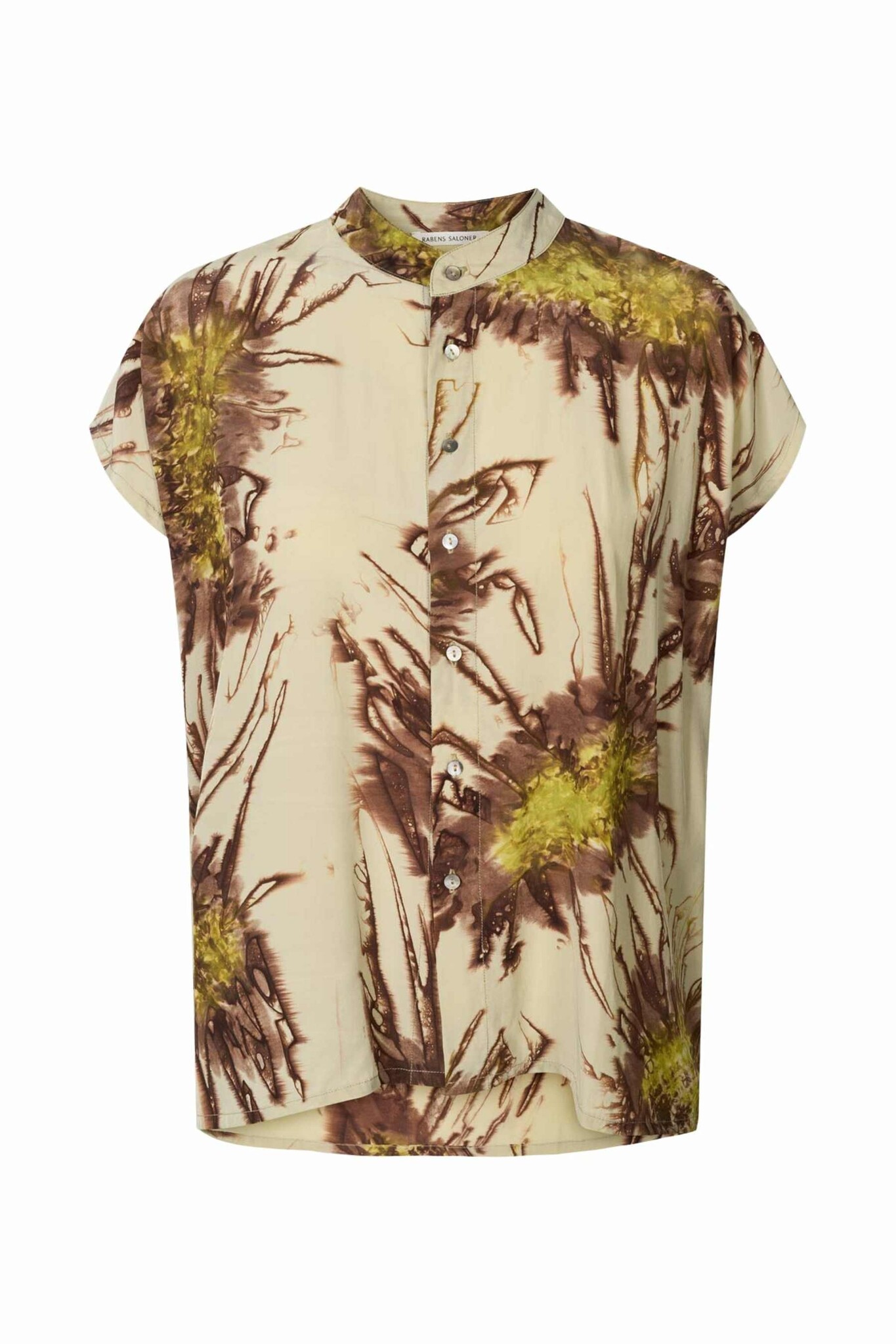 De Sea Urchin Blouse is gemaakt van een lichte, luchtige stof die soepel valt. De pasvorm is los en comfortabel. De blouse heeft knopen aan de voorkant, een ronde hals met klein kraagje en subtiele mouwen.