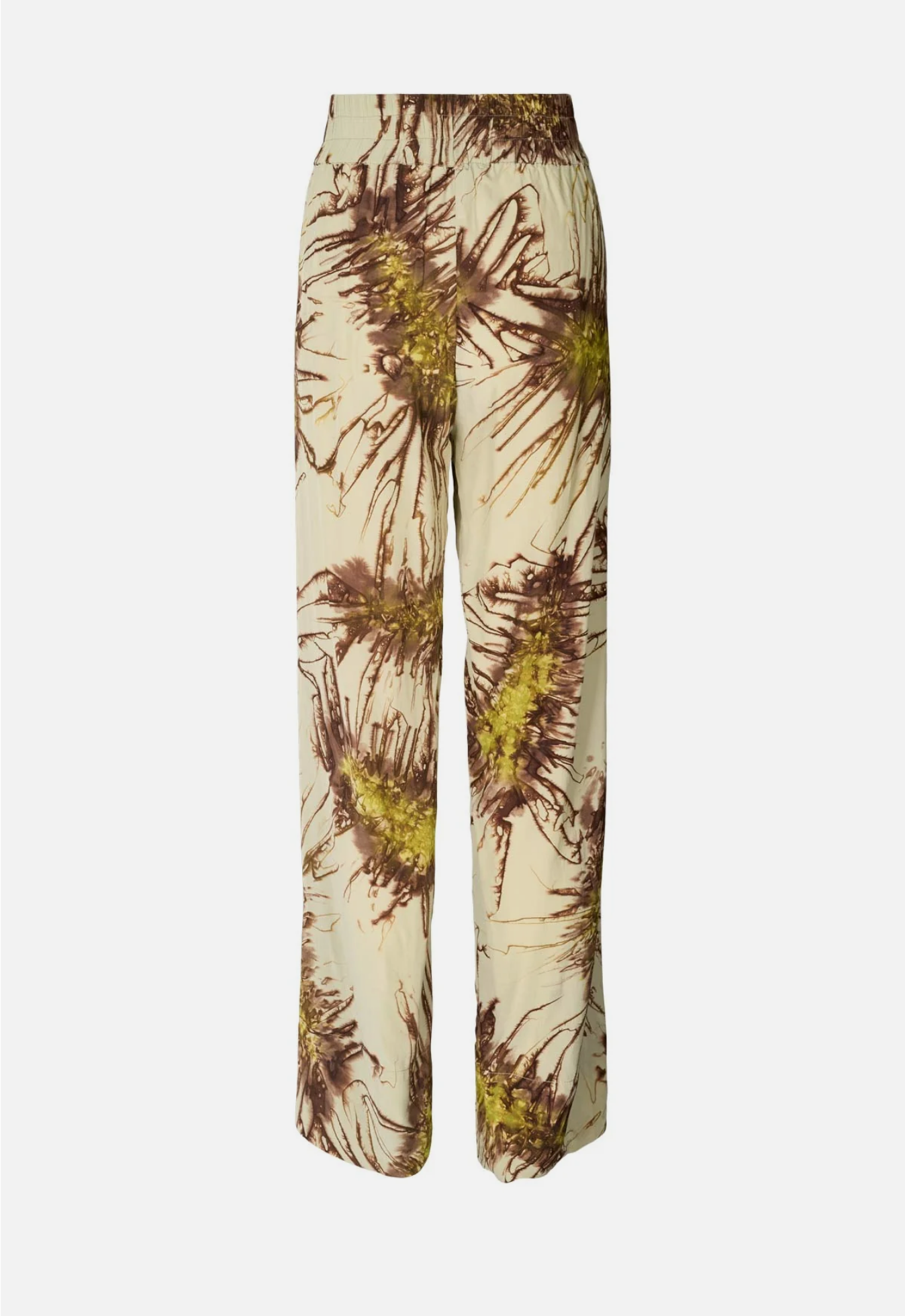De Sea Urchin Pants is een lichte, lange broek met een uniek patroon, handgemaakt in het kleuratelier van Raben op Bali. Met licht wijde pijpen, zijzakken en een elastische taille voor een comfortabele pasvorm.