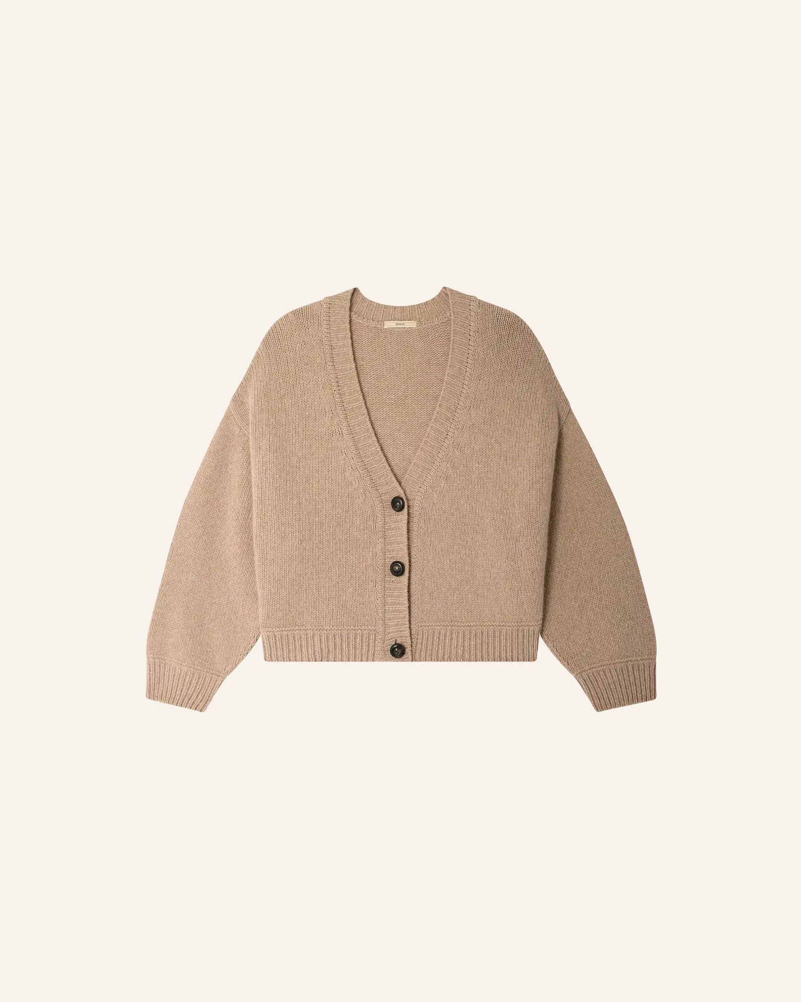 Serato oversized vest van merinowol, gebreid in Italië in tricotsteek. V-hals met knoopsluiting, lage mouwinzet, lange mouwen en asymmetrische splitten. Afgewerkt met ribboorden in ribbelsteek.