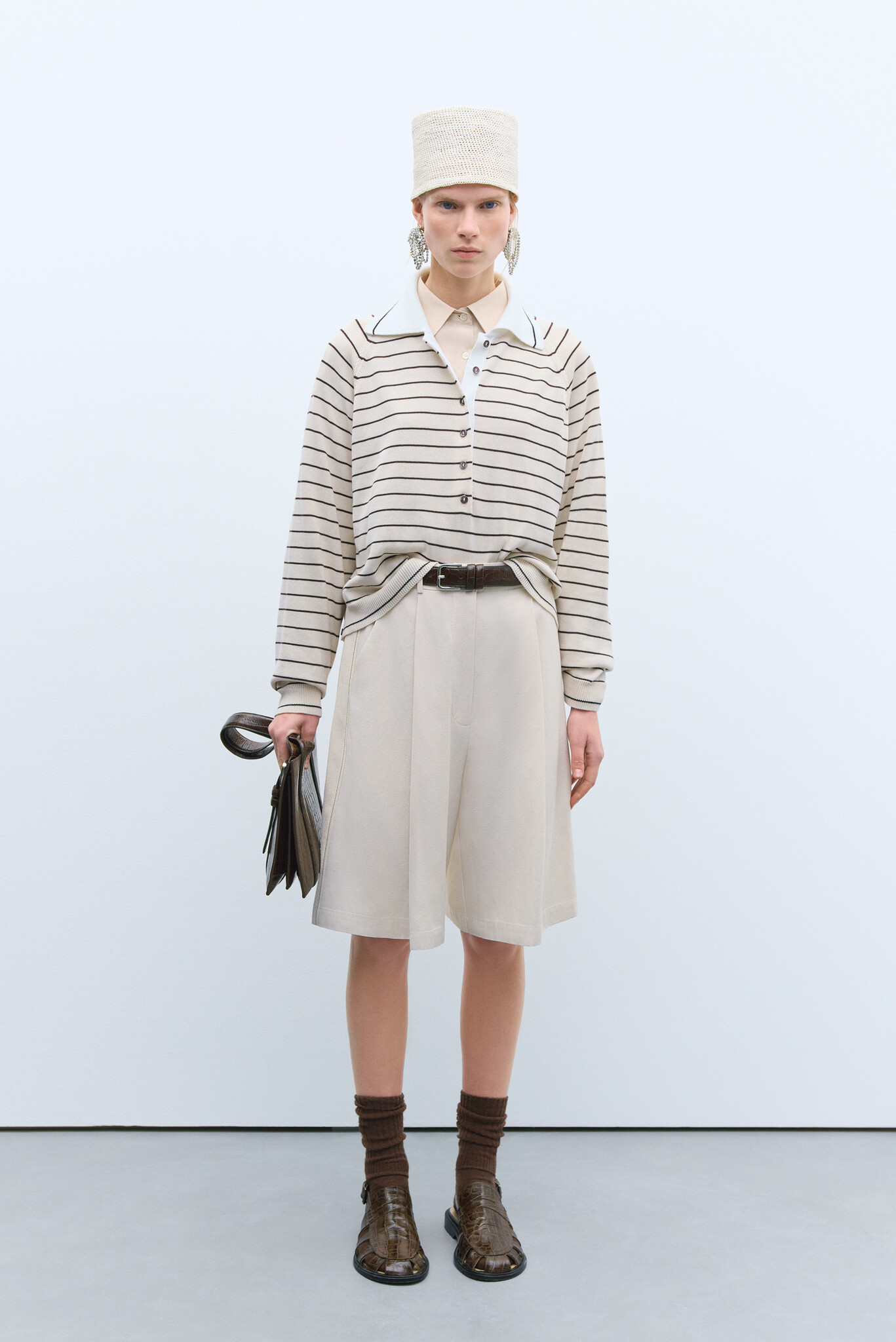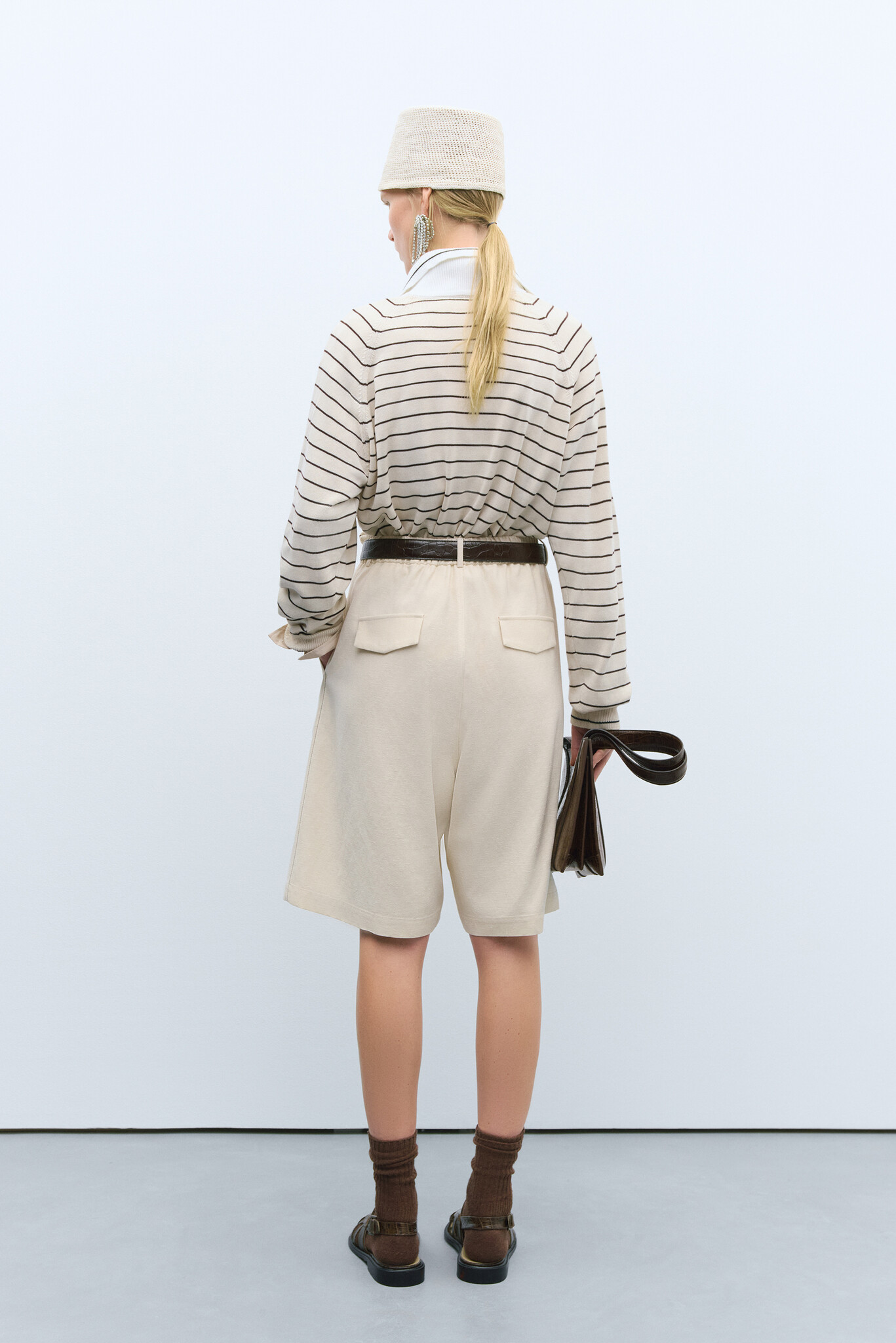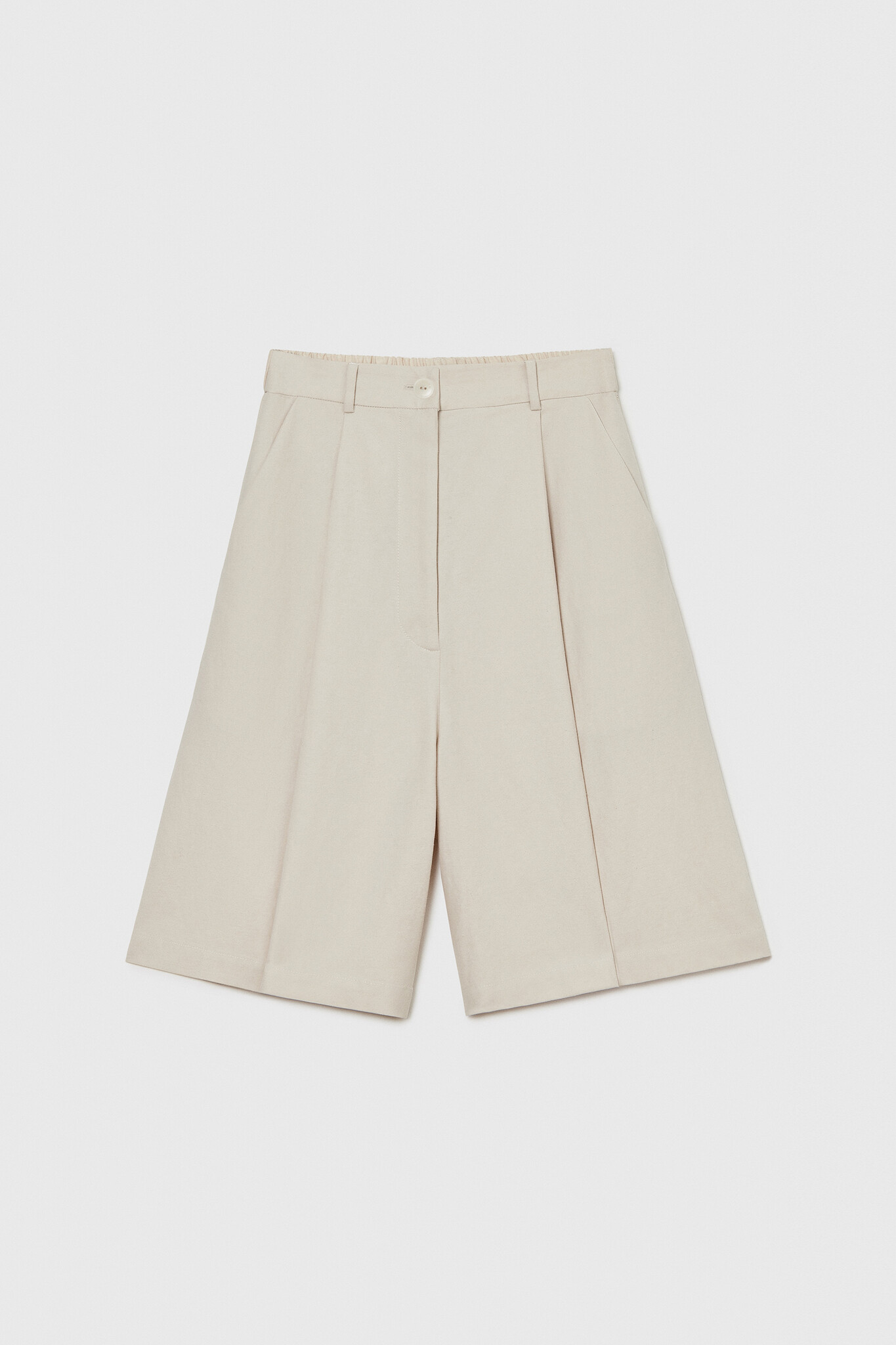 De Signature Tailoring Bermuda heeft scherpe plooien, een elastische taille achteraan en contrasterende zwarte stiksels. Gemaakt van een gestructureerde stof met een subtiel kleurverschil tussen voor- en achterpand voor een unieke uitstraling.