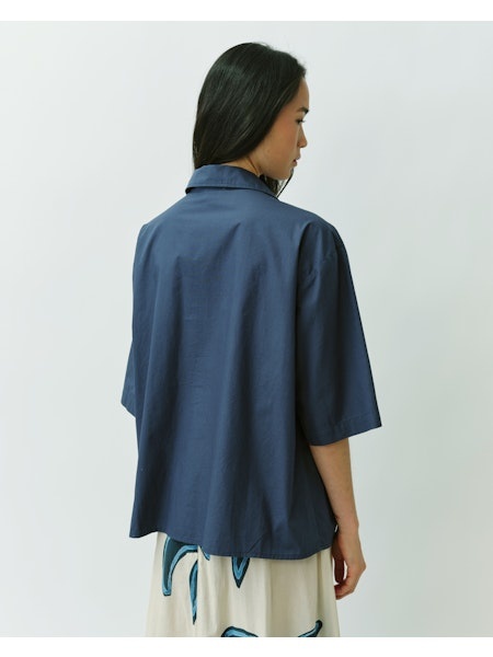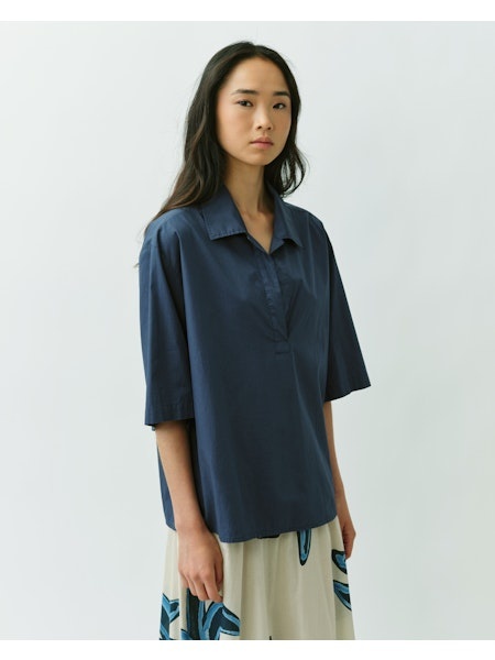 Boxy fit blouse van katoen met een V-hals aan de voorkant en een kraag. De rechte, losse pasvorm geeft een moderne en comfortabele uitstraling.