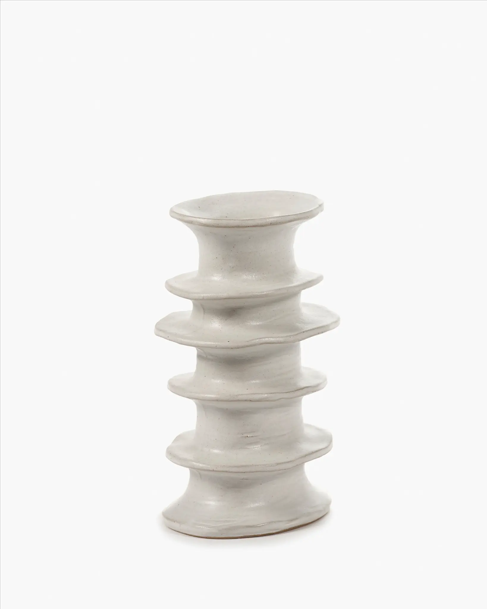 Deze handgemaakte witte vazen zijn unieke stukken met een bijzondere uitstraling.De tijdloze offwhite tint en organische vormen geven ieder interieur een serene, rustgevende sfeer.