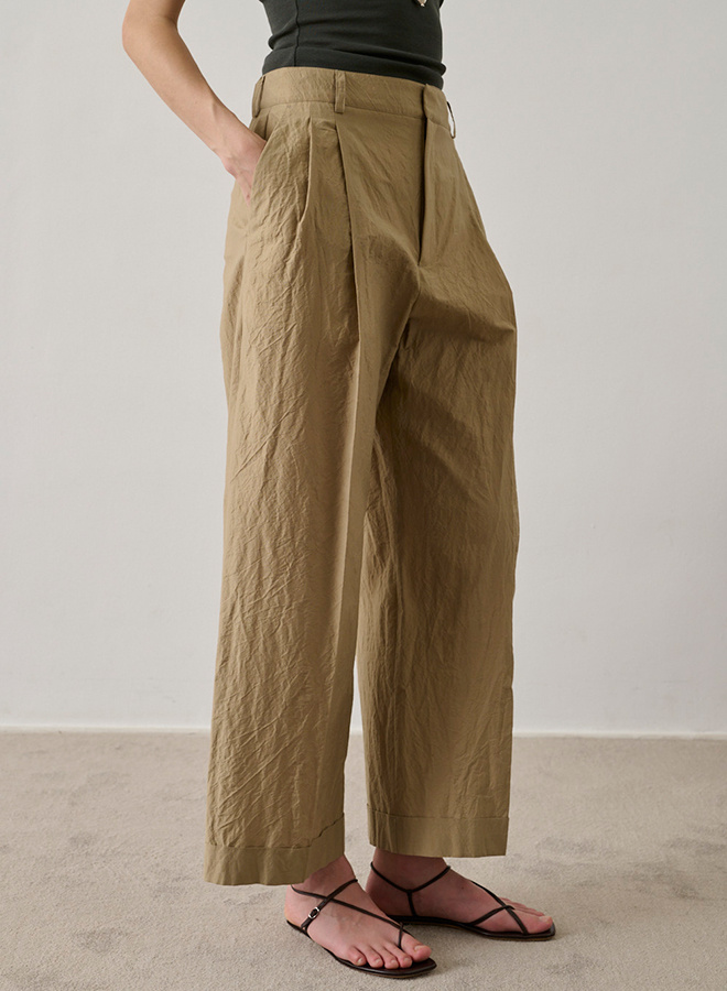Deze high-waisted wide-leg broek heeft een elegante, moderne uitstraling. De geperste vouw langs het been zorgt voor een strak silhouet, terwijl de verfijnde zakken en nette sluiting het ontwerp compleet maken. Perfect voor zowel casual als geklede looks.