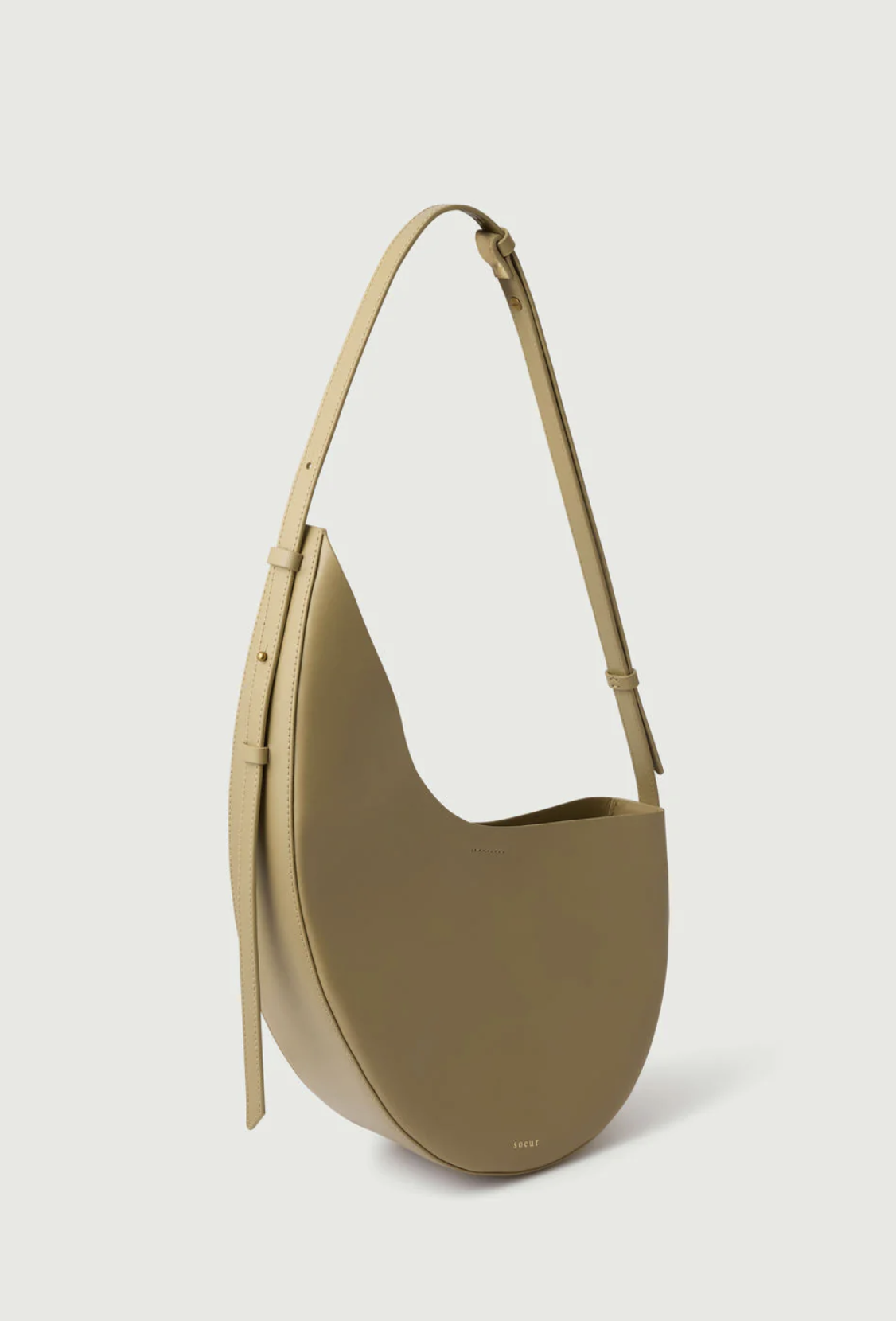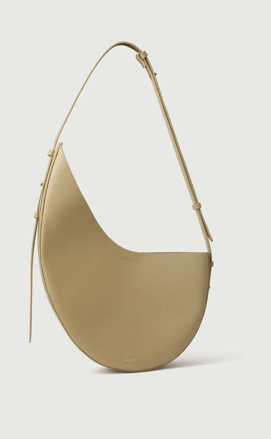 De Winona bag is een leren schoudertas met een asymmetrische, afgeronde vorm voor een moderne uitstraling. Voorzien van een magnetische sluiting en een verstelbare leren schouderband met studs. Inclusief uitneembaar lamssleren pouch aan de binnenzijde.